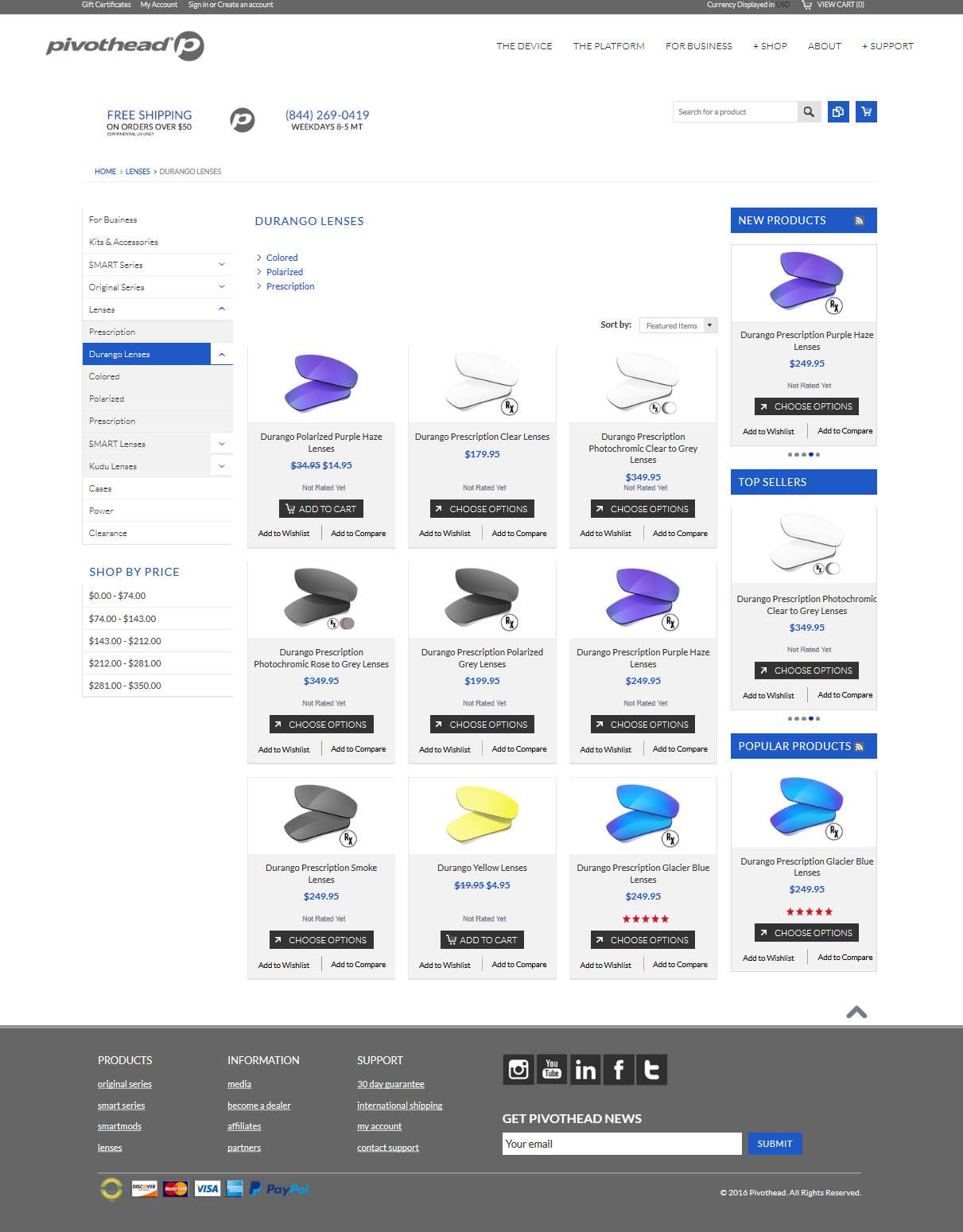 Különböző minőségű Pivothead lencséket lehet hozzá vásárolni a 30 Dolláros normál lencsétől a 350 Dolláros Photochrom lencséig, de víztiszta, vagy dioptriás lencsére is cserélhető.
