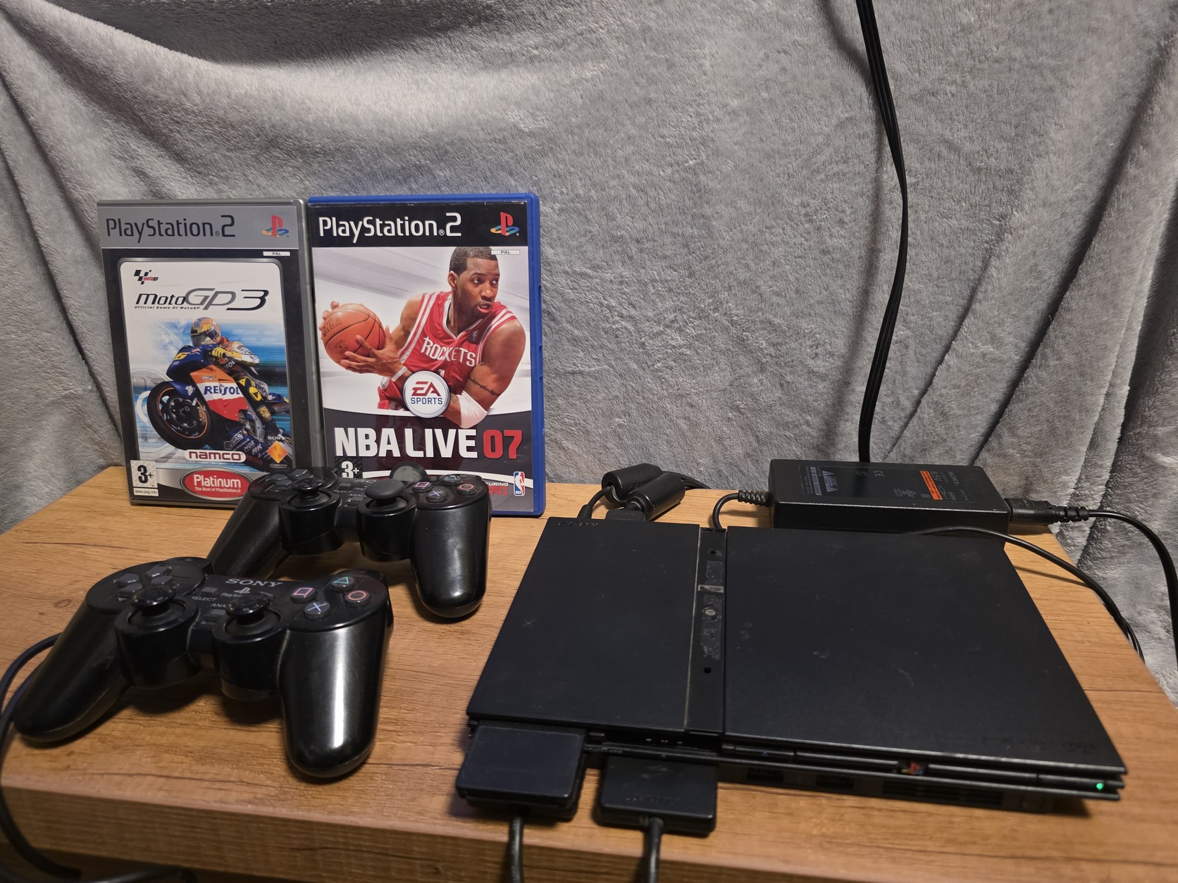 Eladó a képen látható PlayStation 2 Slim, tartozékokkal és néhány játékkal.