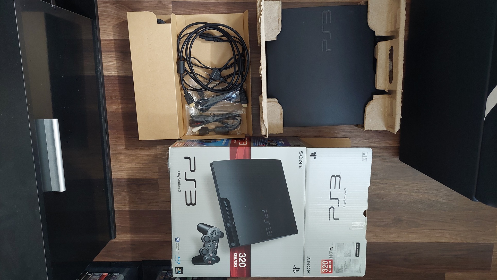Eladó PS3 játékkonzol két kontrollerrel, dobozában, megkímélt állapotban.