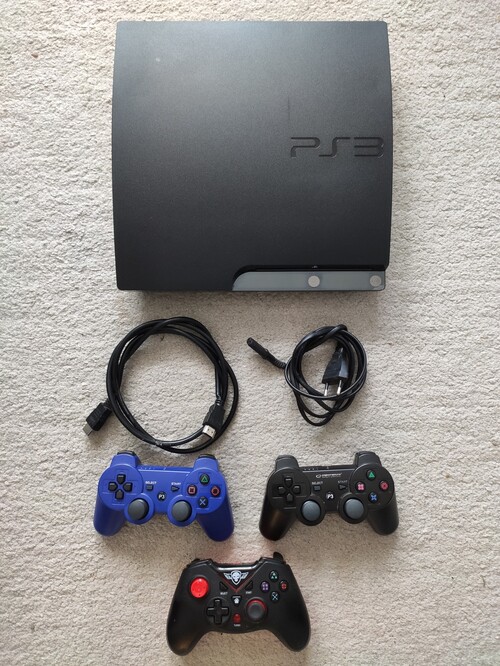 Eladó a képen látható 300 GB tárhellyel rendelkező PS3 Slim konzol.