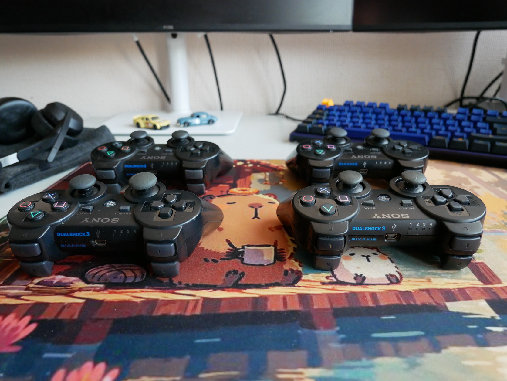 4 Kontroller, 3 DS3, egy SixAxis, legjobb tudomásom szerint mindegyik eredeti Sony.
