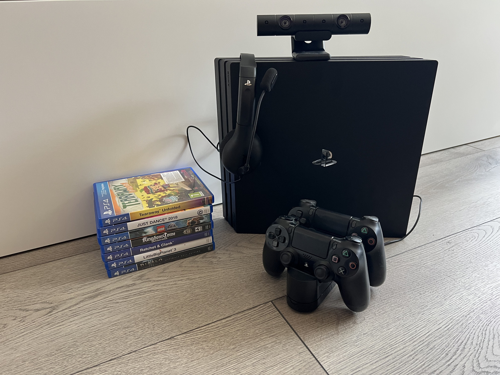 PlayStation 4 Pro 1 TB, 2 kontroller és hozzá töltö valamint kamera és headset + 7 játék