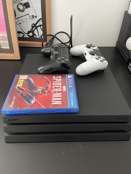 Közel tökéletes állapotban eladó Playstation 4 Pro 1 TB CUH-7016B, 2 gyári kontrollerrel és 1 lemezes Spider Man játékkal.