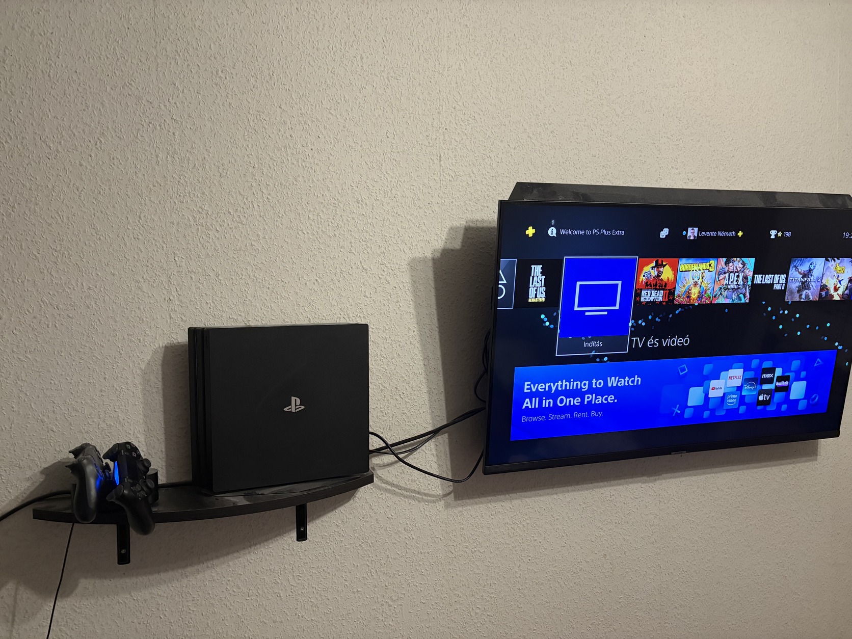 Napi használatból eladó a képeken látható Playstation 4 Pro konzol, gyári kontrollerével + 1db szürke kontrollerrel + Sony töltő állomással, gyári vertical standdel, hálózati kábelekkel és 10méteres HDMI kábellel - kategória váltás miatt.