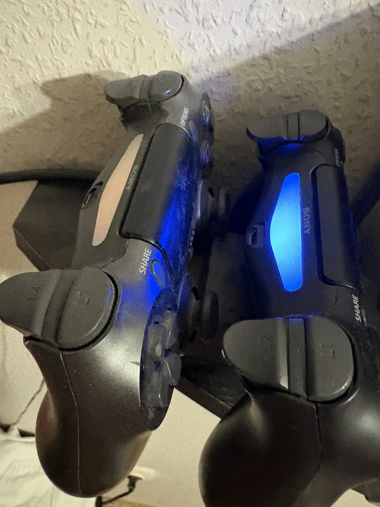 A szürke kontroller markolatokon kopás van, de a működésében nem befolyásolja. Mind a két kontroller megfelelően működik (hangszórók, padok, gombok, triggerek és tumbstickek megfelelőek, nem ghostolnak, ragadnak vagy csúsznak).