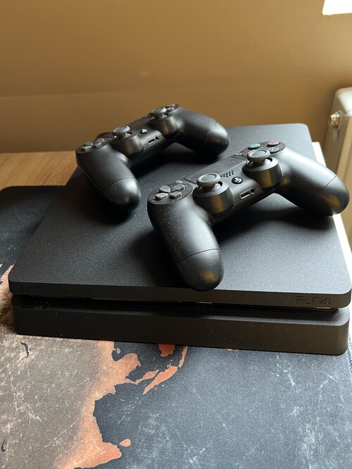 ELADÓ kihasználatlanság miatt a képen látható hibátlan állapotú PS4 Slim 1TB konzol két kontrollerrel. Verzió CUH-2016B.