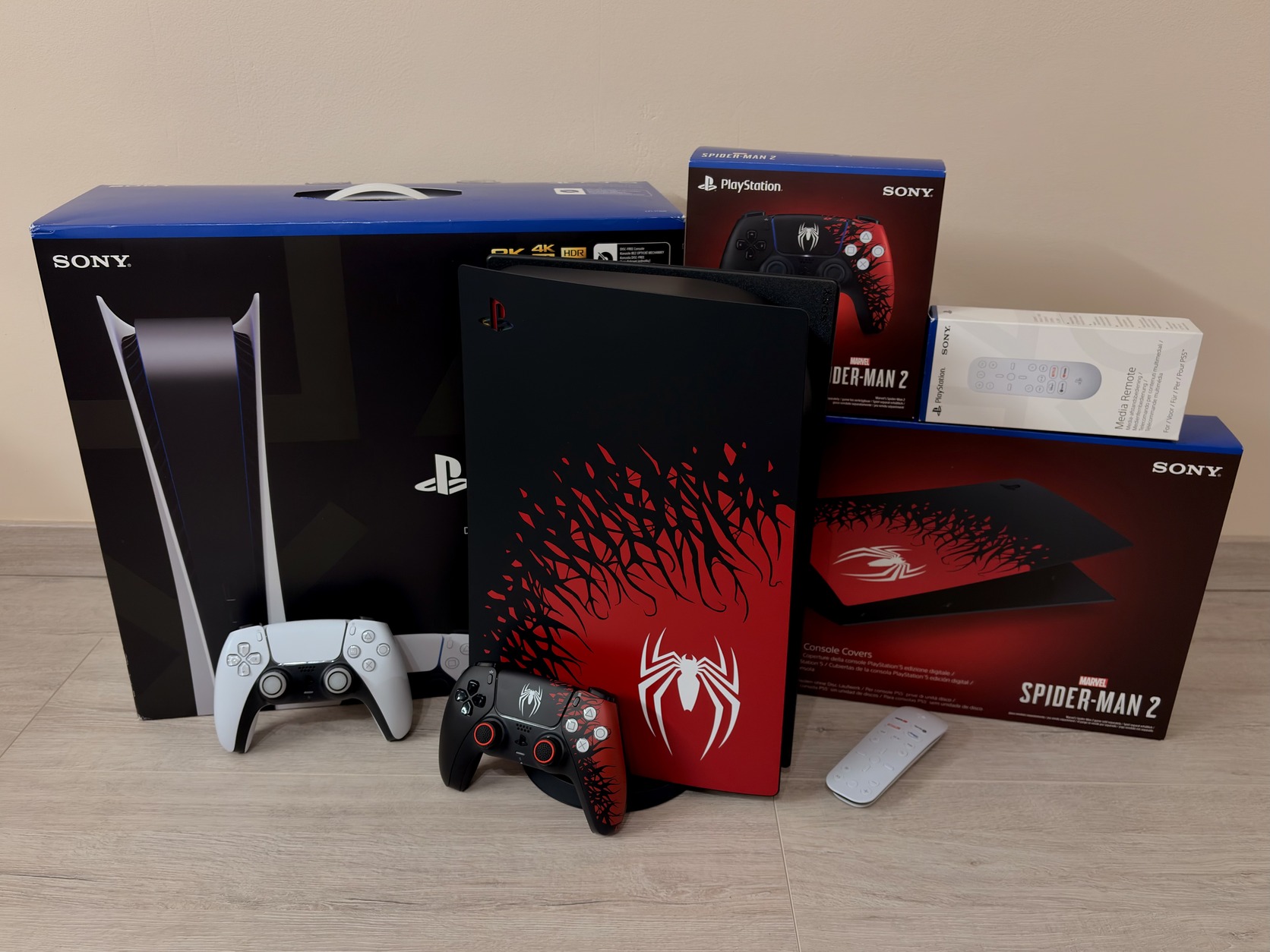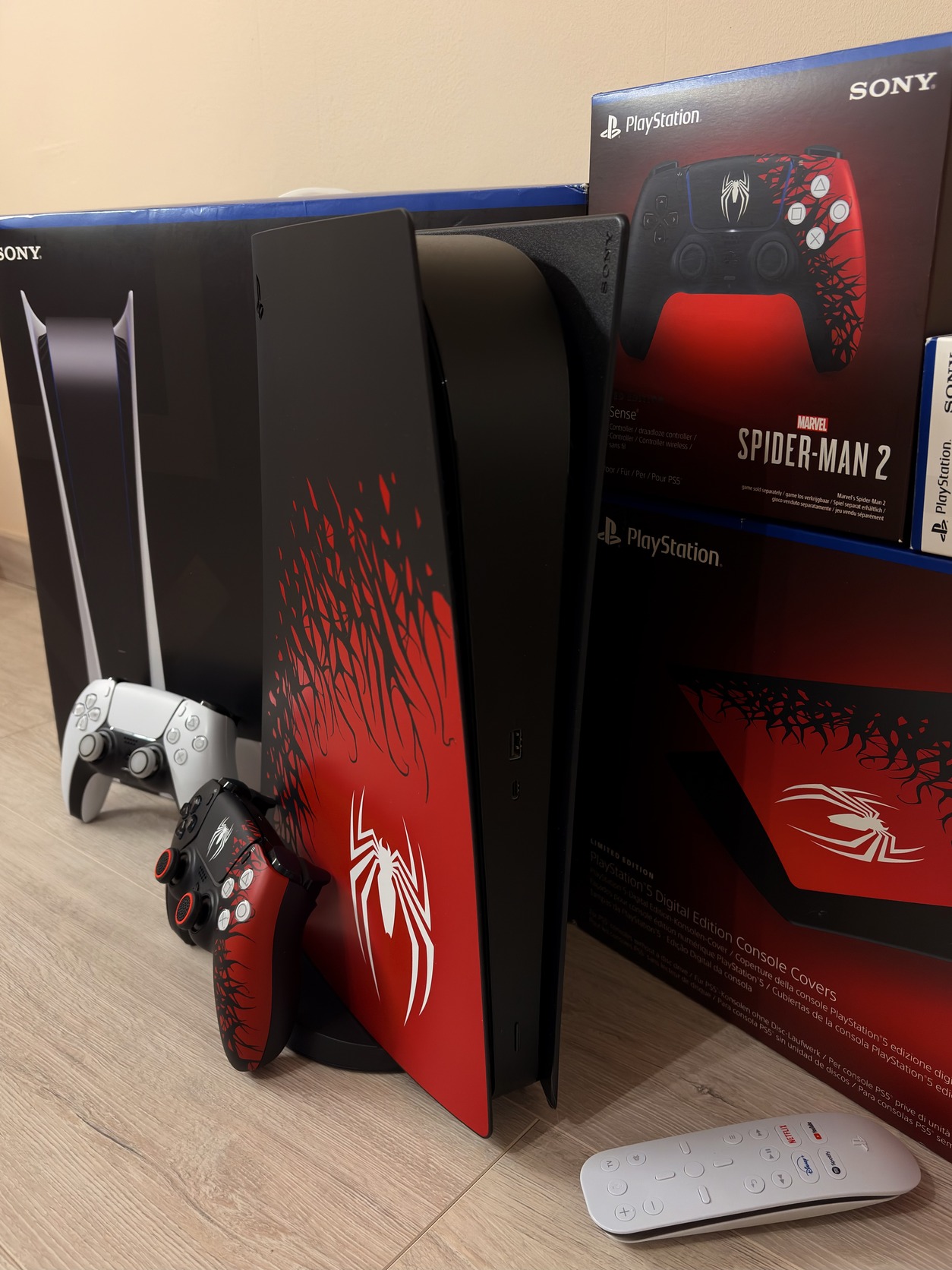 Eladó nagyon szép állapotban lévő PlayStation 5 Digital Edition - Spider-Man Limited Edition kiegészítőkkel!🕷️