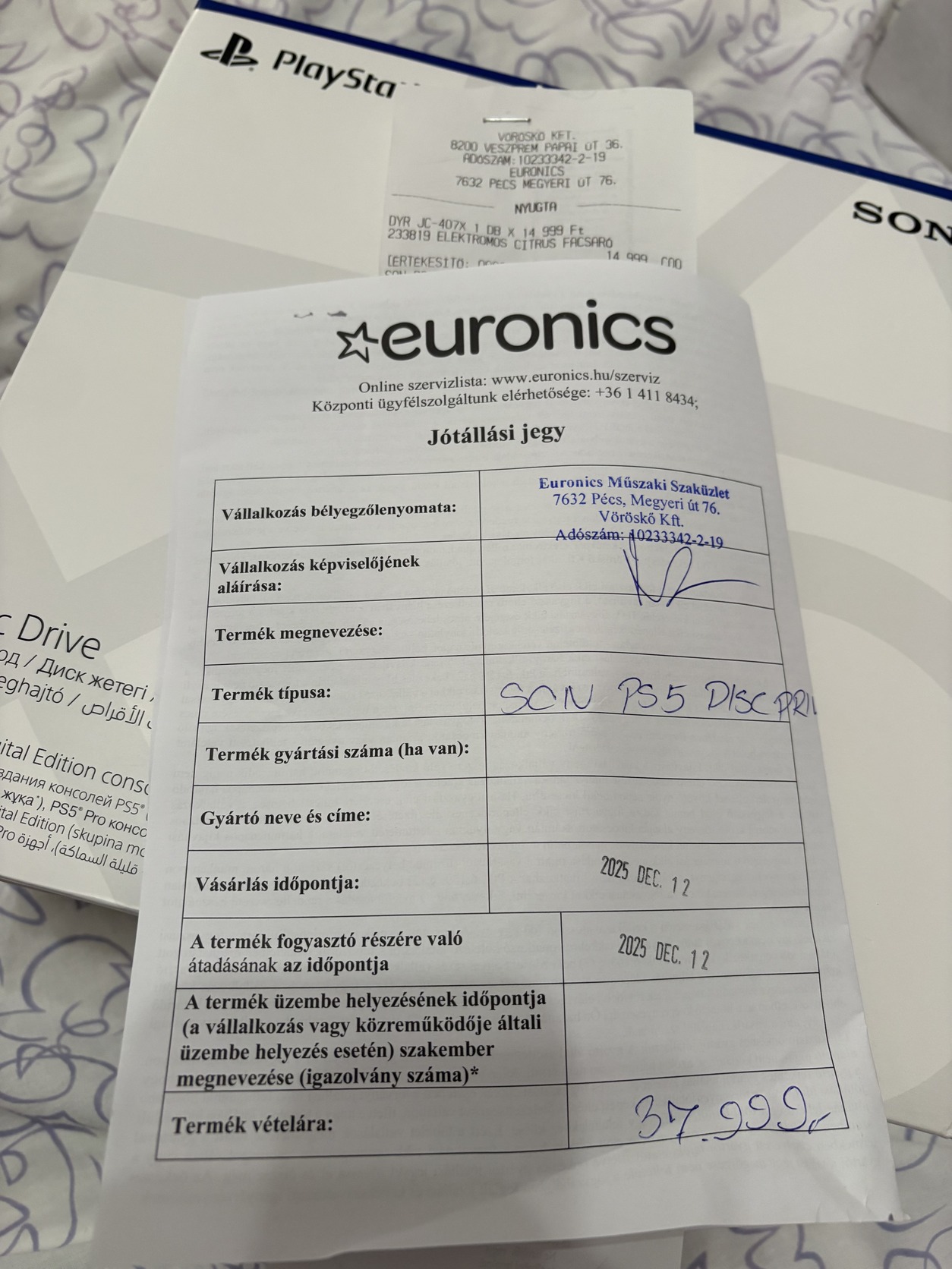 2025.12.17 lett vásárolva, Euronicsben így még garanciális!