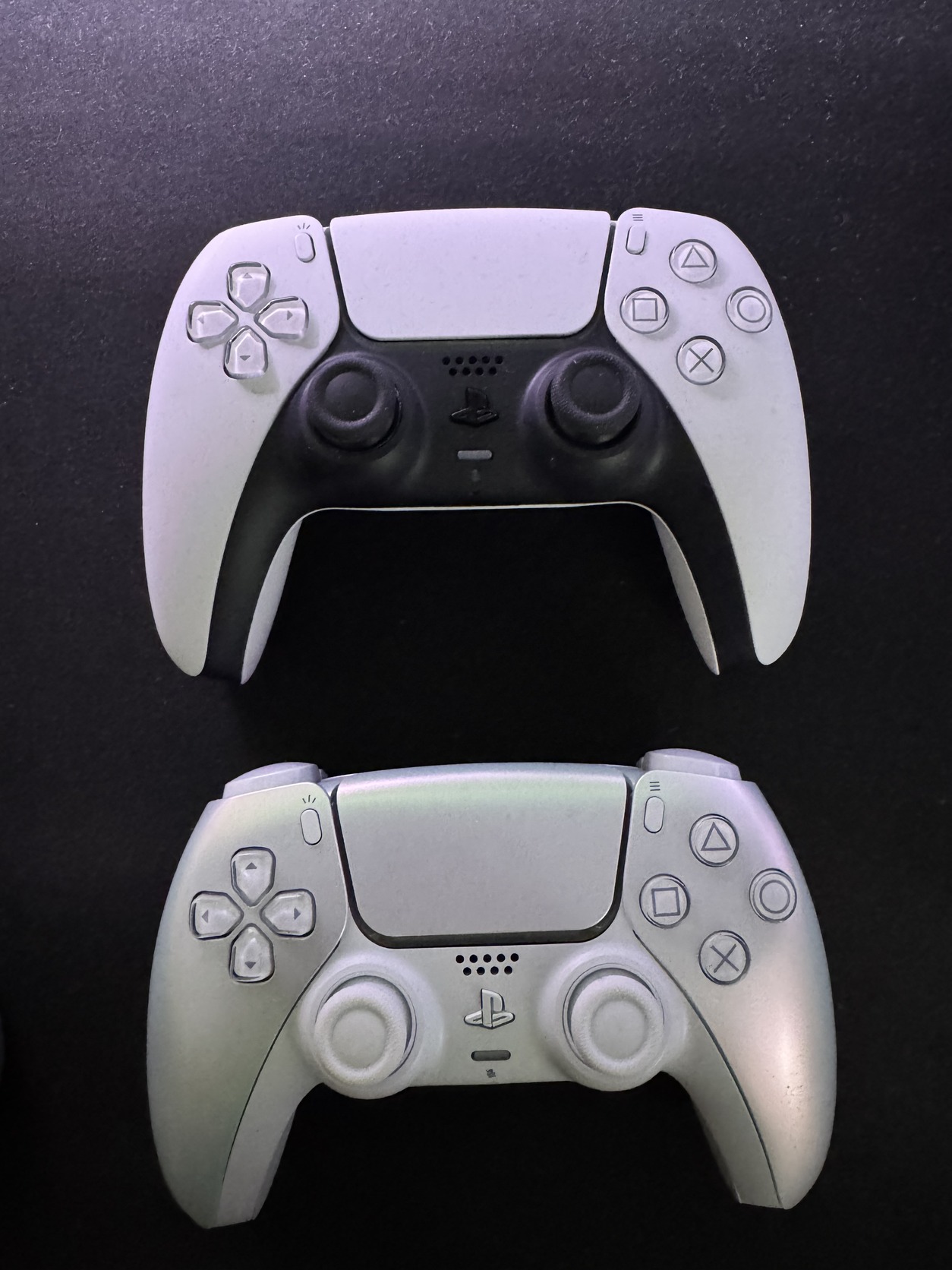 Chrome Pearl Dual Sense controller és a gyári controller.