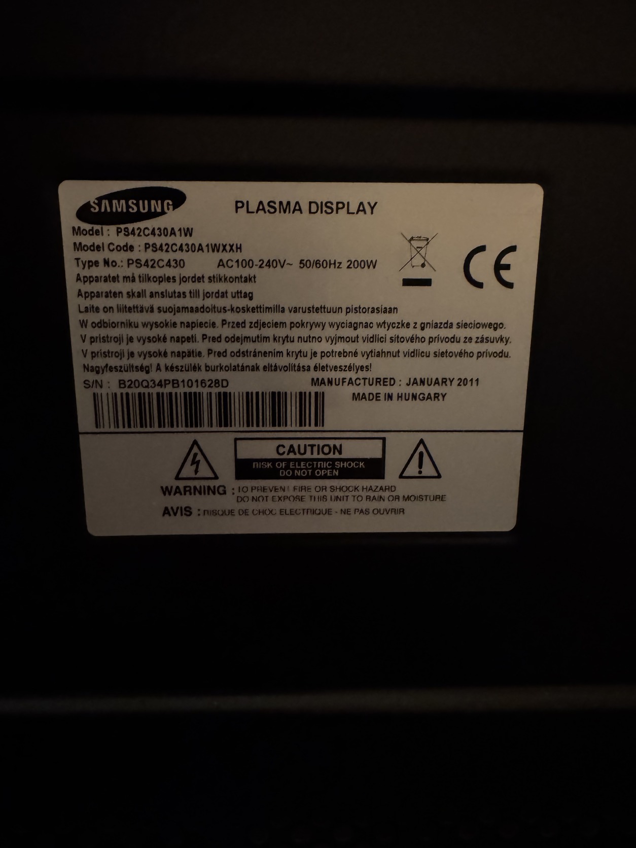 Samsung plazma tv PS42C430A1W