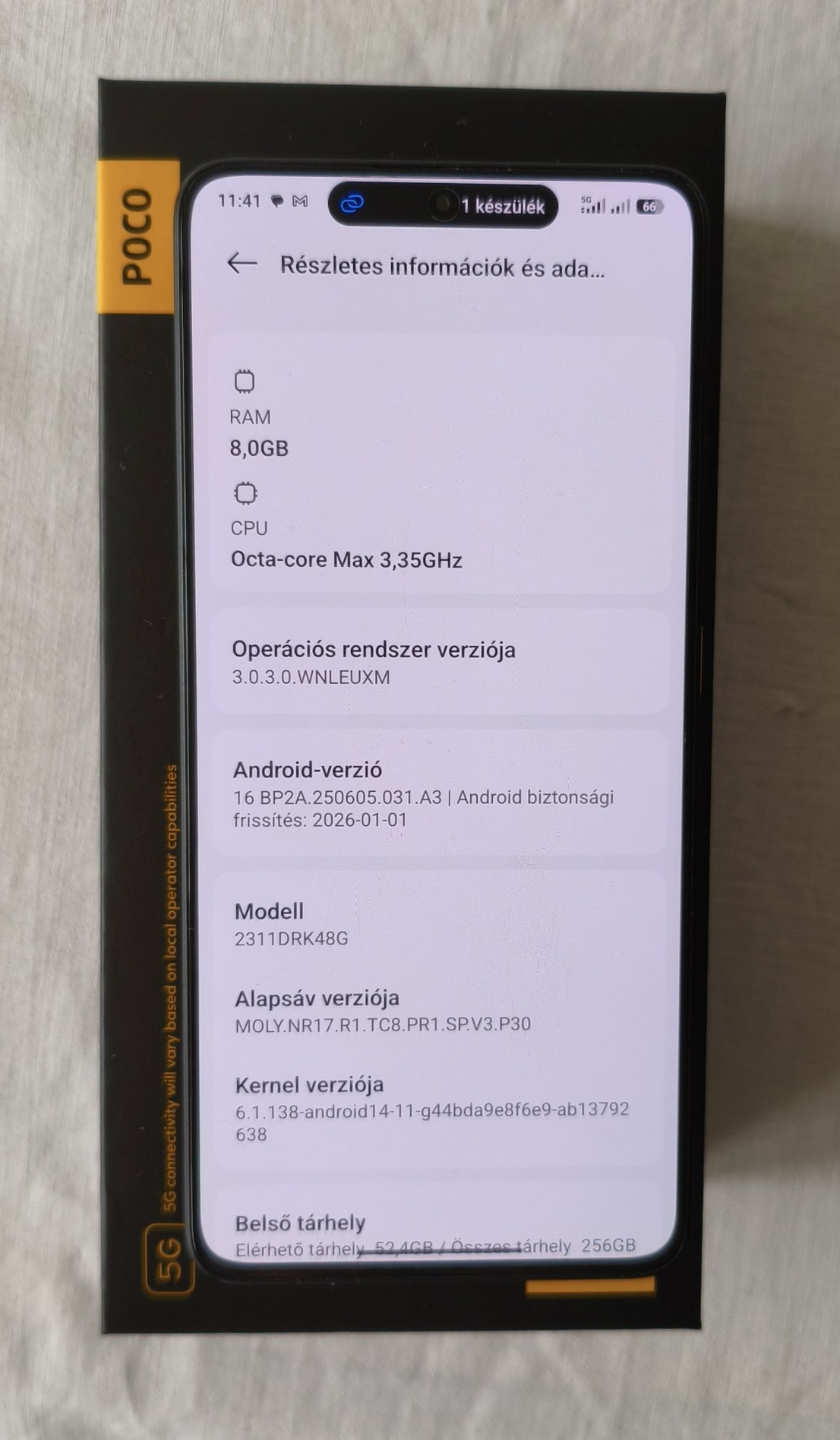 Poco X6 Pro 5G készülék 8/256GB memóriával, sárga - vegán bőr - hátlappal, állapota mint az új.