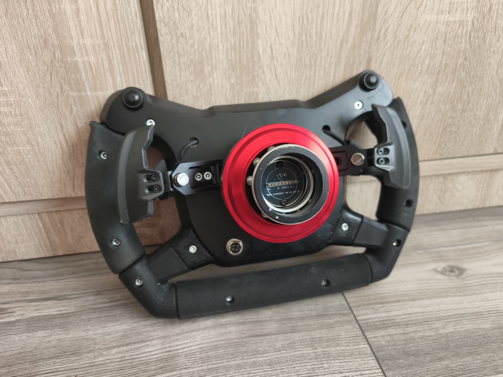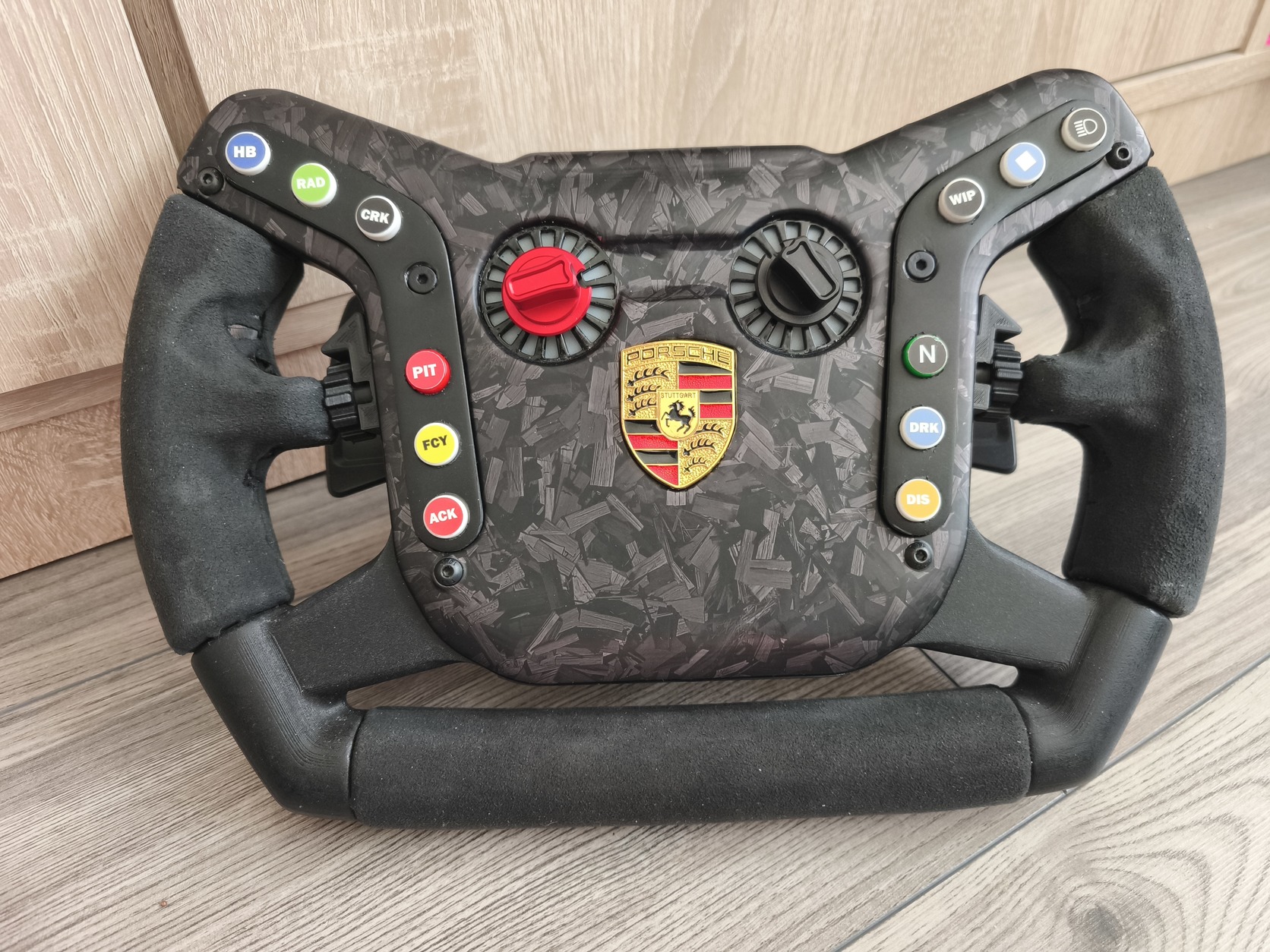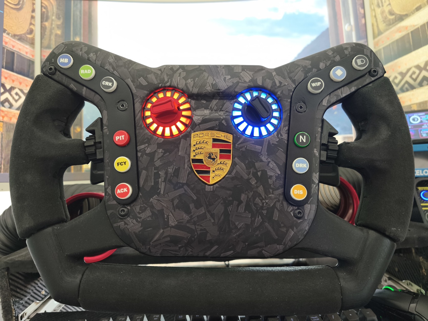 Elado a képeken látható kormányom. 4mm alu lemezre épül az eredeti kormány méretarányos replikája. 16 gomb, 4 forgó kapcsoló, aluminium váltók. 16db címezhető led a középső encodereknél simhubban bármit rá lehet állitani. Usb kábelen működik. Simagic Evohoz tudok adni pcb-t a QRbe hogy ne kelljen kábelezni. +5e.