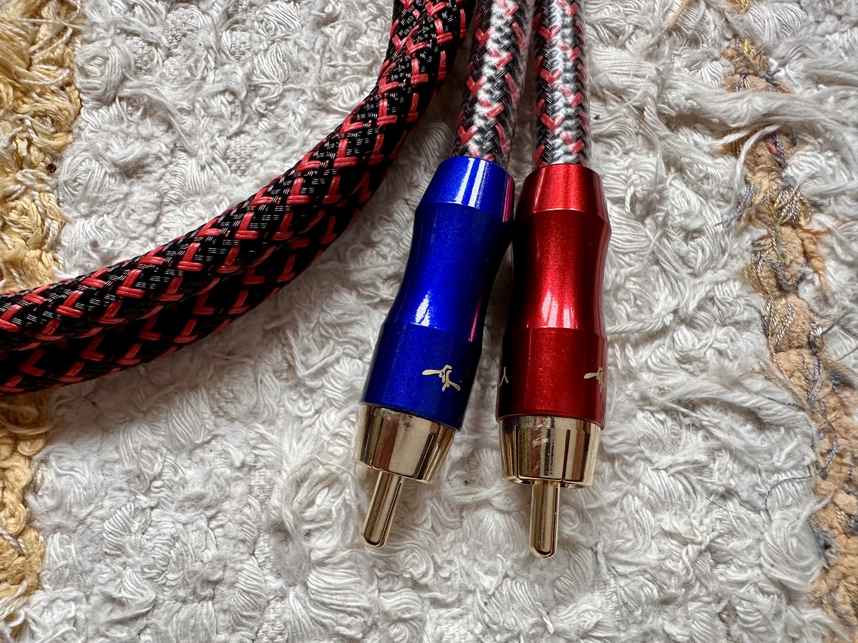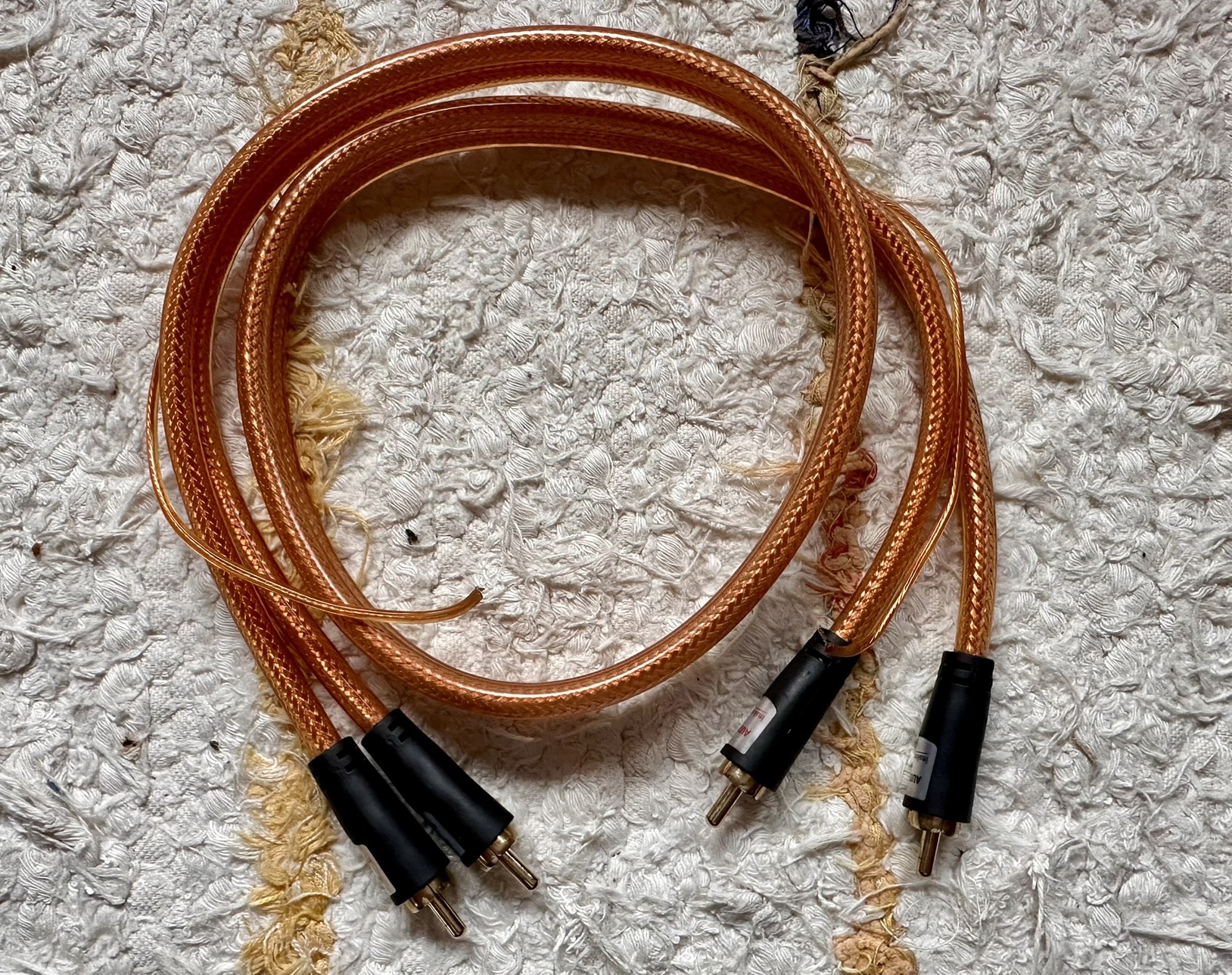 1-2. kép: 0.5 méteres, 1 pár, 15.000ft ELADVA7N OCC 99.99999%-os réz+ ezüst12 szálas fonott vezetékWBT-stílusú dugóFonott külső köpeny, 9 mm átmérőAranyozott csatlakozók