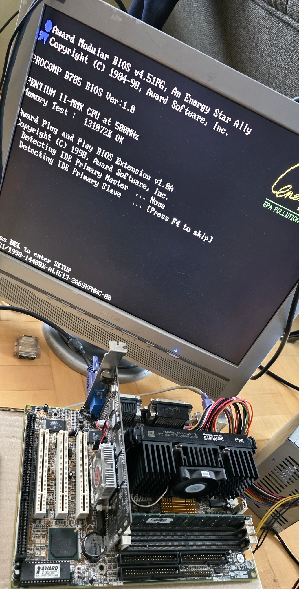 Eladó egy Procomp B785 Intel i440BX Slot1 alaplap + Intel Pentium II 333Mhz Slot1 Proci és 128Mb SD ram