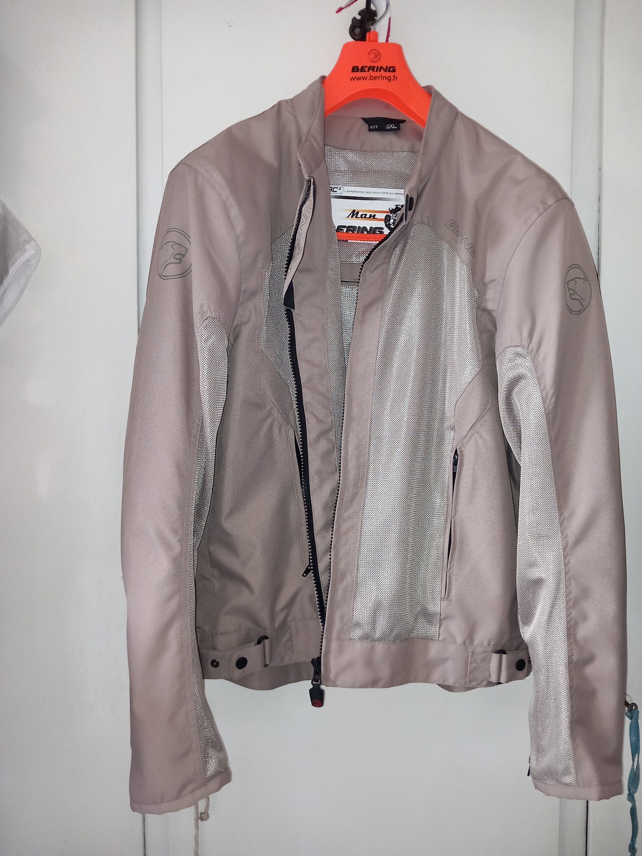 Eladó halvány drapp (bézs) színű új nyári motoros protektoros kabát. ( A fényes világos barna, drapp színű anyag a fényképen rózsaszínnek tűnik, de nem az a valóságban.)