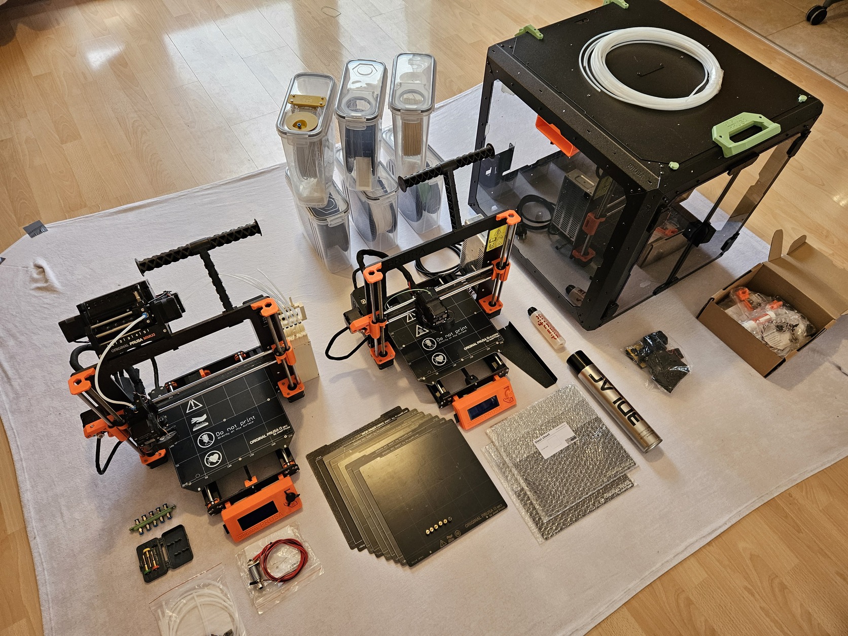 Prusa MKS3+, 5db Sheet, 6db nozzle, 3db Filament szárító dobozban, 1db gyári HotEnd