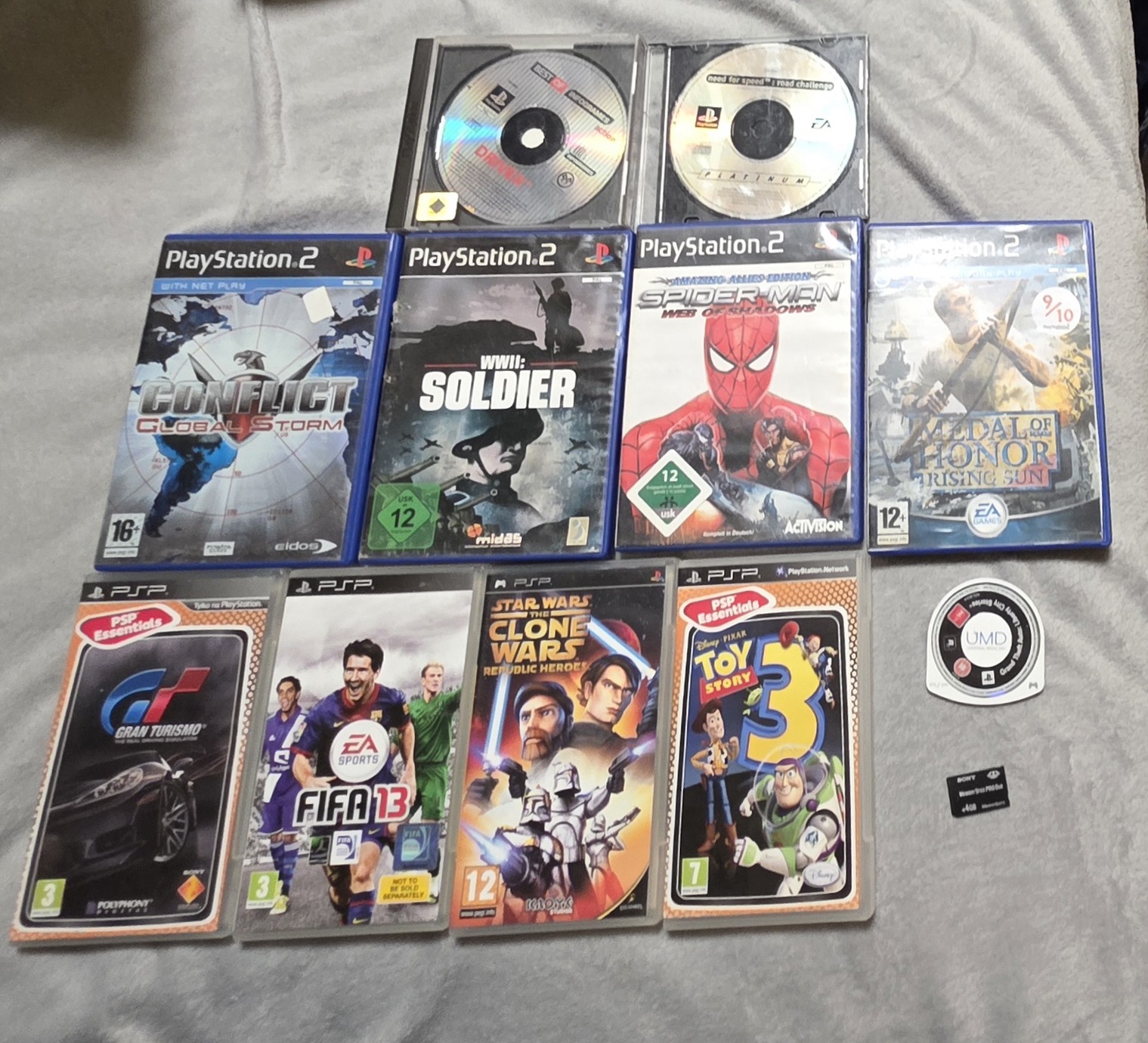 Eladó a képen látható PS1, PS2, PSP játékok és PSP memória kártya.