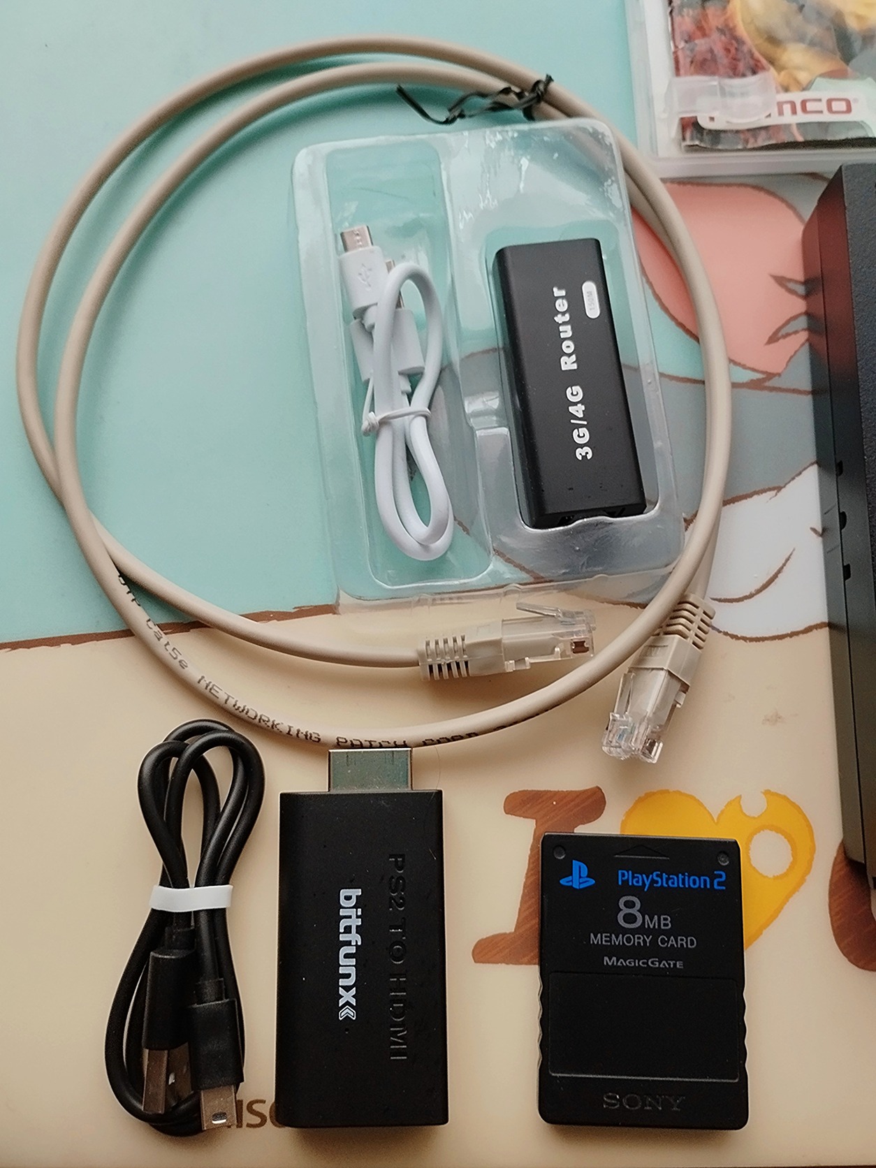 A csomagban: - konzol+hálózati adapter, 1 db kontroller, 1 db 8 mb memória kártya, router+vezetékek, hdmi átalakító, az eredeti AV vezeték, Tekken 5 dvd tokkal együtt.