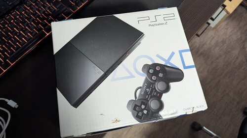 PS2 Slim konzol, jó állapotban, hibátlan működéssel, egy eredeti kontrollerrel, táppal, 6 db játékkal. Van mellé egy másik kontroller is de az legyen ajándék, mivel már nincs a legszebb állapotban.