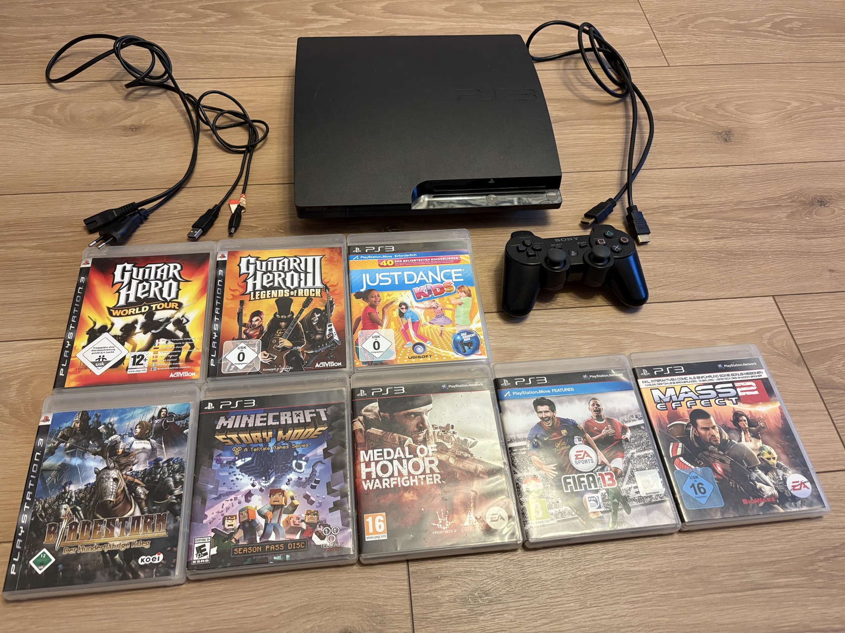 PS3 Slim 320GB konzol, jó állapotban, hibátlan működéssel, 1db kontrollerrel, kontroller töltő, táp és HDMI kábelekkel, 8db játékkal.
