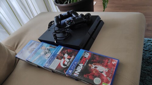Két kontroller + Fifa 19, Fifa 16, NBA2K16, Gran Turismo Sport