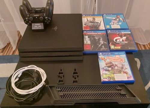 PS4 Pro 1TB állvánnyal, 5 játék, 2 kontroller + töltő