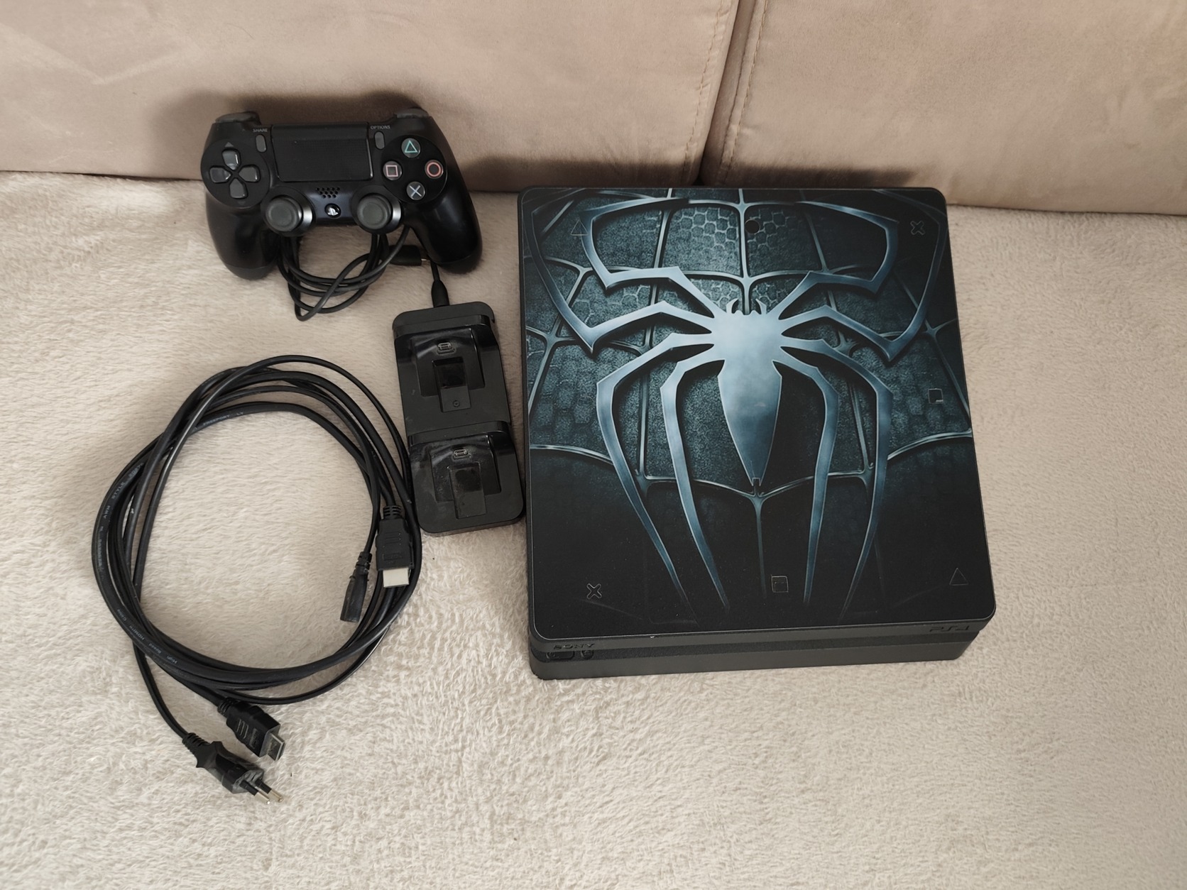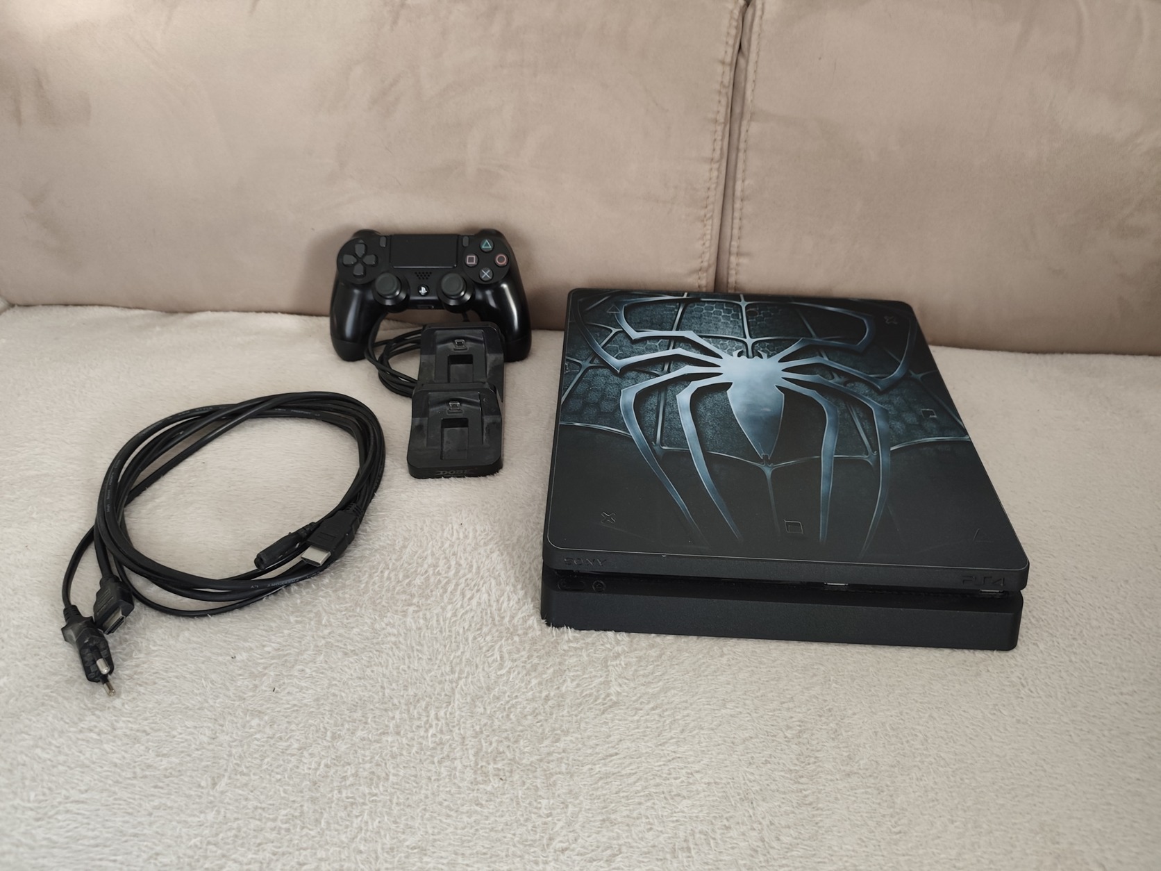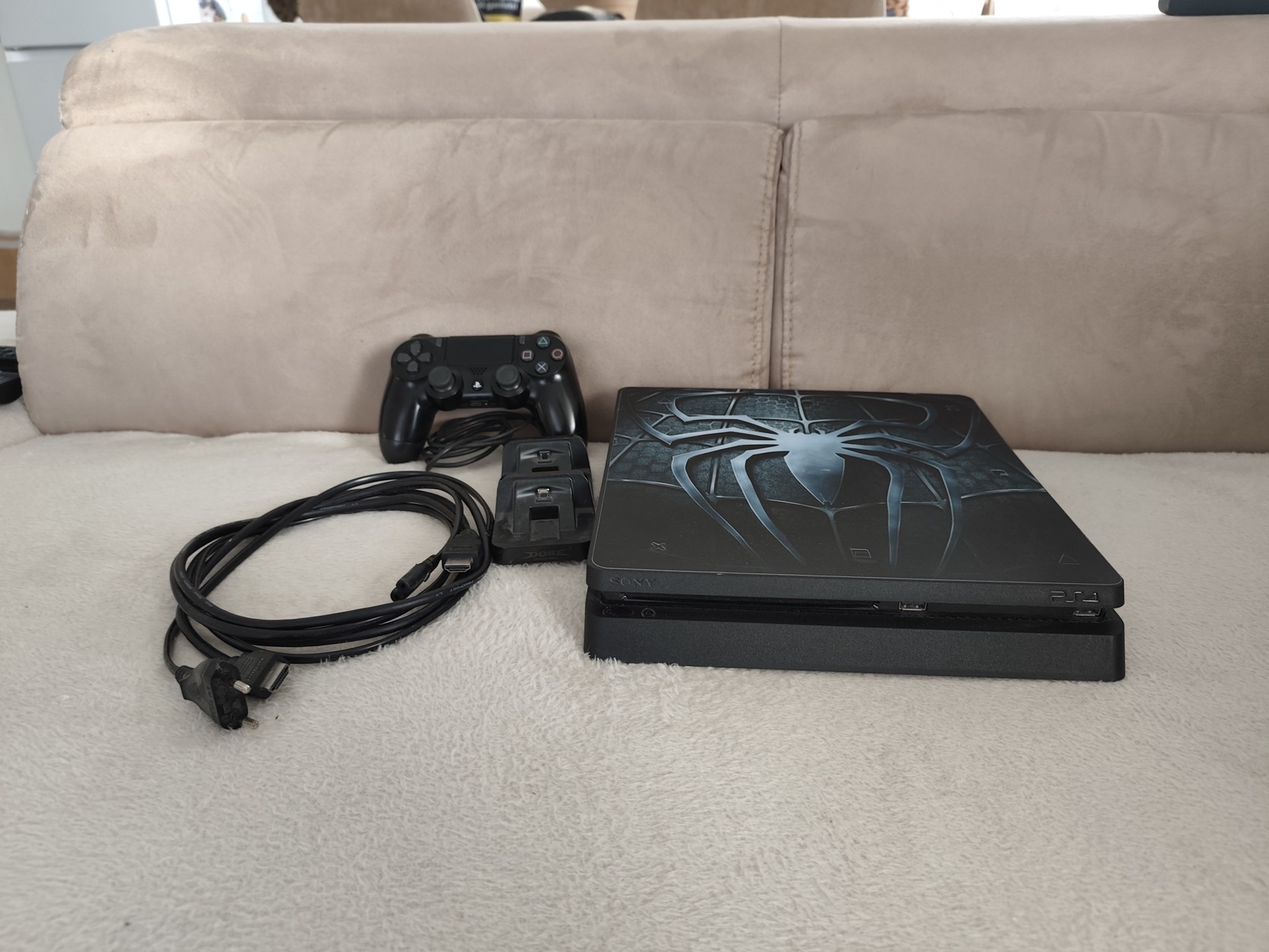 Eladó a képeken látható PS4 Slim 500. A gép és a fekete kontroller hibátlanul működik. 4 játék jár hozzá, ajándék kontroller dokkolóval és egy hibás, de működőképes (fehér) utángyártott kontrollerrel.