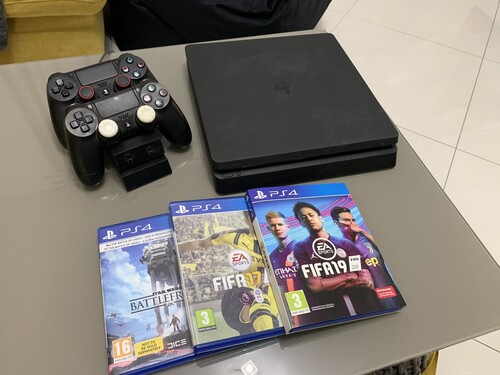 PS4 Slim 500gb + 2 kontroller + 3 játék, 2 éves gép