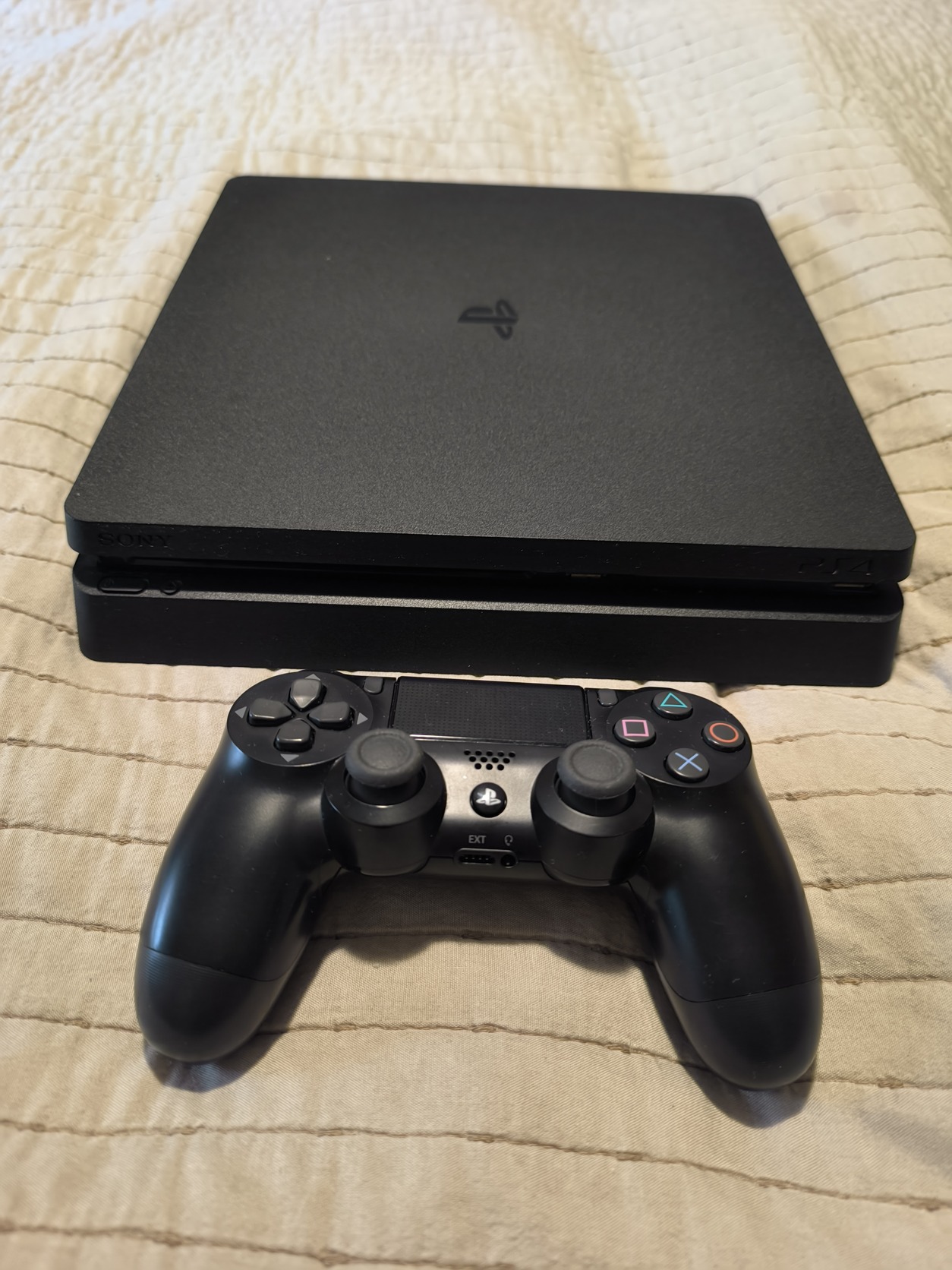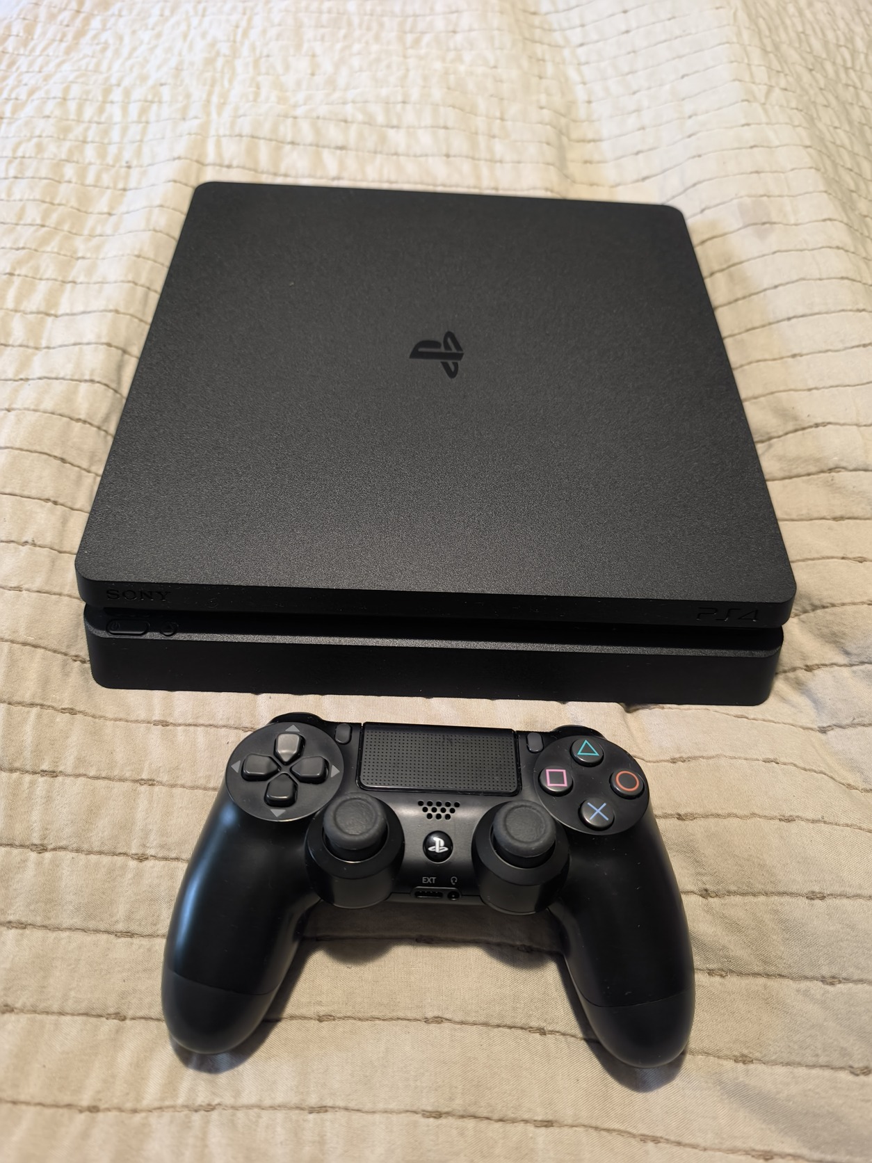 Eladó hibátlanul működő PS4 Slim konzol, beleértve a kontrollert és kábeleket.