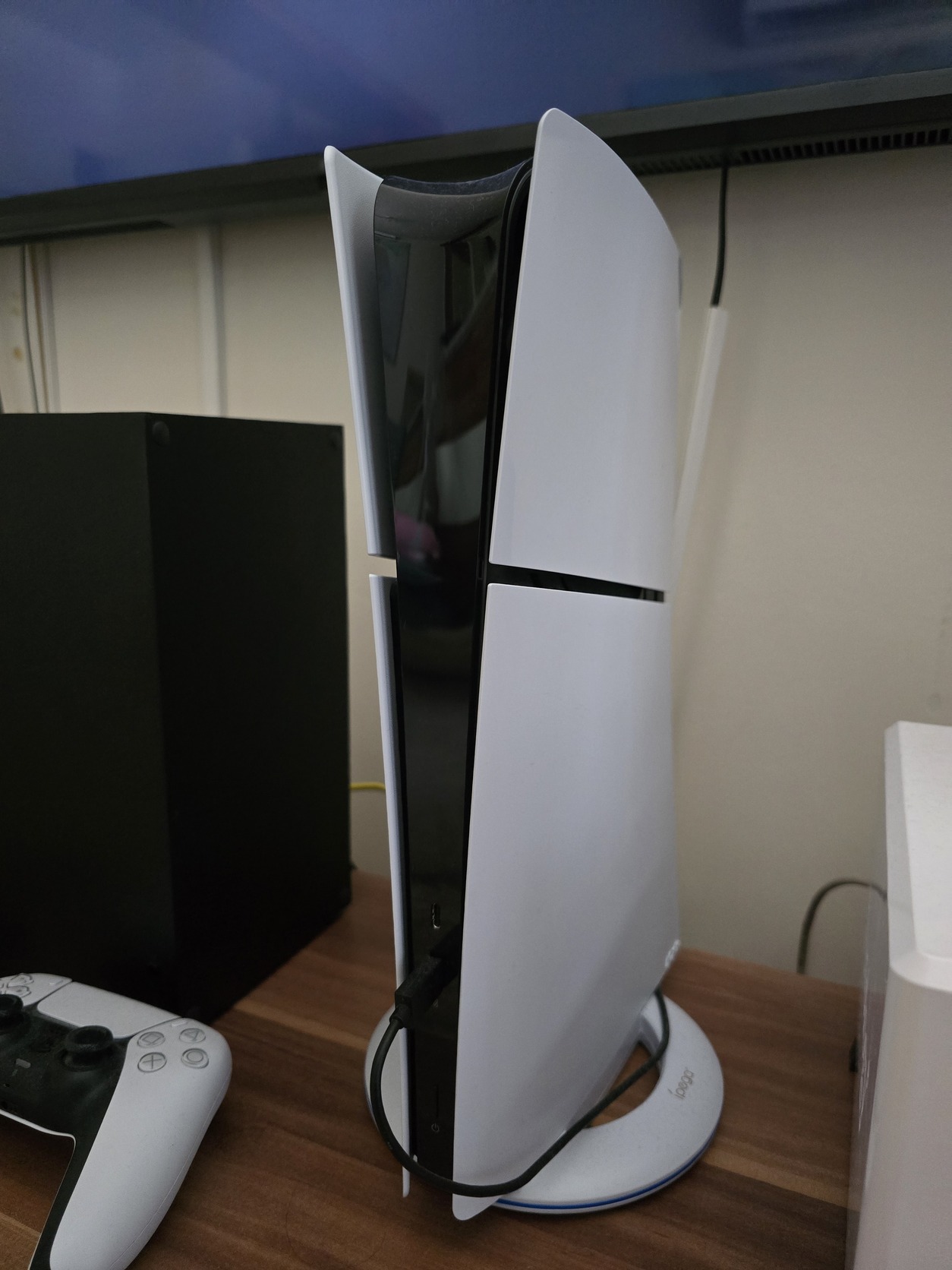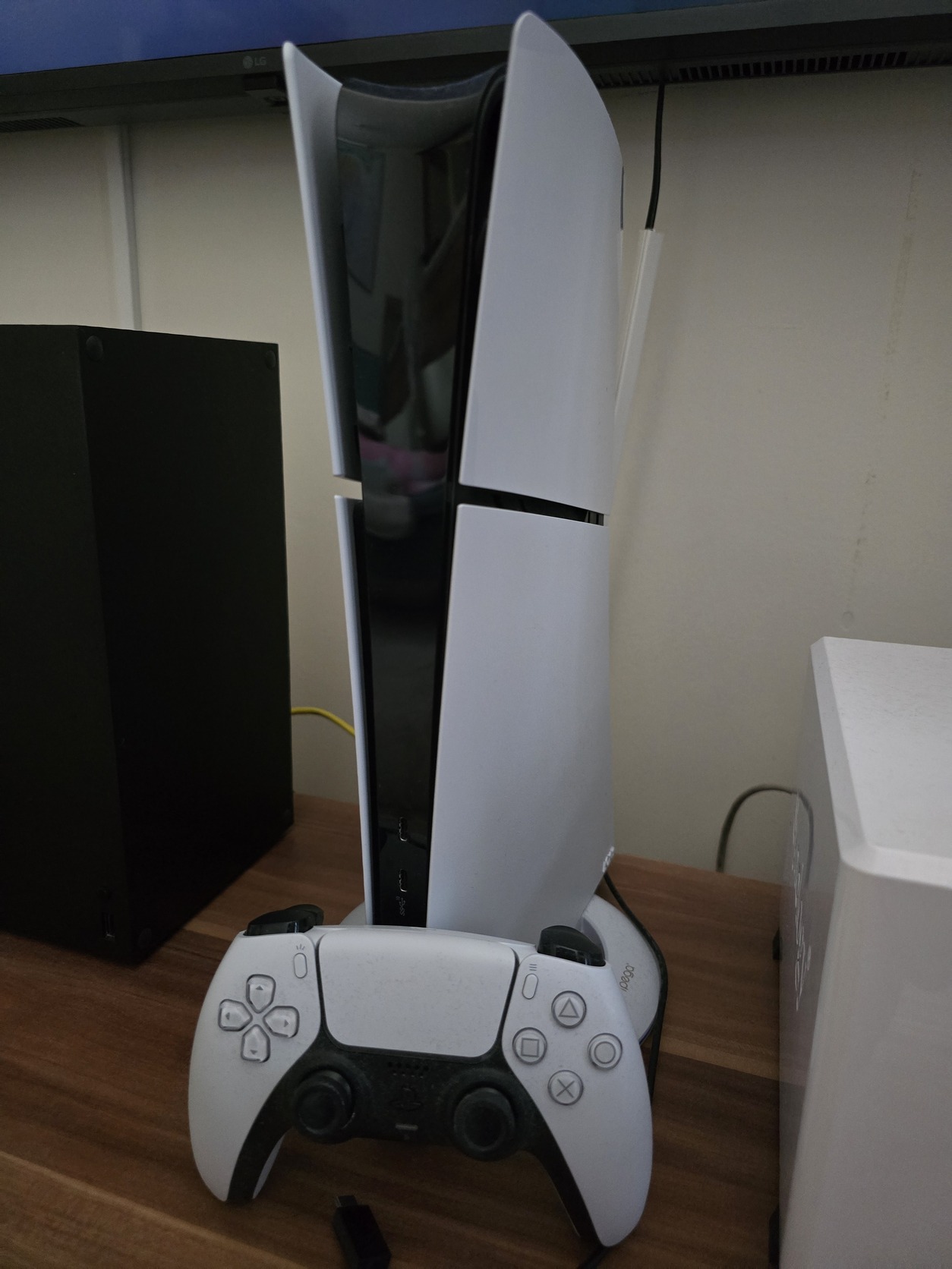 Alig használt PlayStation5 Slim eladóvá vált, állvánnyal együtt.