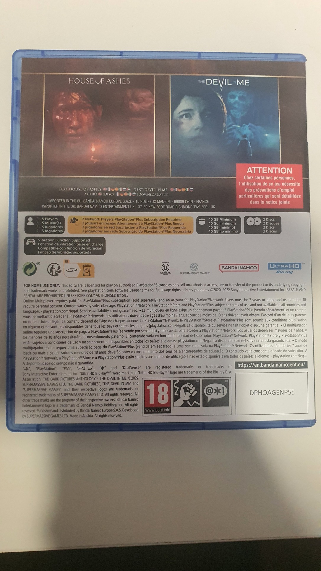 The Dark Pictures Anthology Volume 2 (PS5):Ez a csomag 2 teljes játékot tartalmaz: A House of Ashes-t, valamint a The Devil In Me-t
