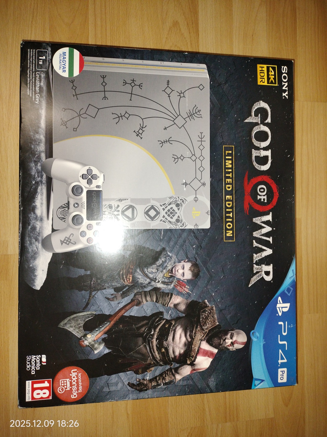 Eladó God of war limitált konzol, dobozában és a képeken látható tartozékokkal.