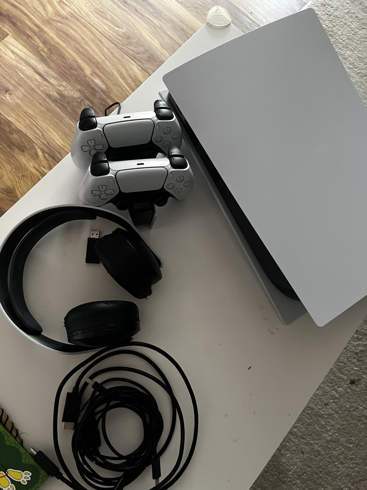 Eladó lemezes PS5 2 kontrollerrel, fülessel, dual charger station-el. Egyik kontroller enyhén driftel, másik tökéletesen működik. Füles tökéletesen működik, de esztétikai hibás! Képen látszik. 2023.04.01.-én Alzánál vásároltam. 24 hó garin felül +3 év kiterjesztett garanciával, tehát még garanciális. Számla megvan. Doboza megvan.