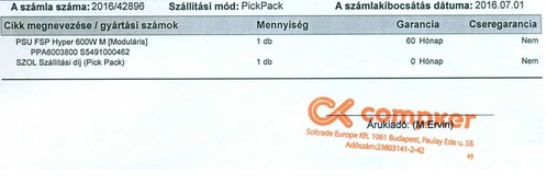 Mobilitási probléma miatt laptopra váltottam, ezért régi PC-m részeit mint például ezt az PSU FSP Hyper 600M-es tápegységet eladásra kínálom.