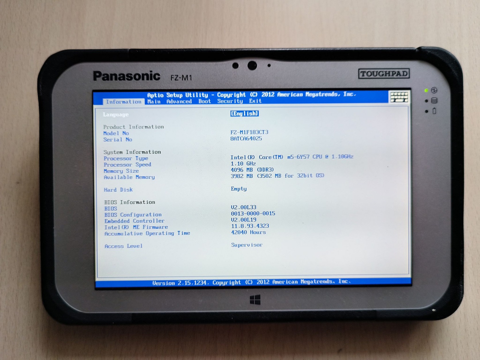 Panasonic Toughpad FZ-M1F (7", Core m5 6y57, 4 gb ram, Windows 10 Pro licensz, jó akku)