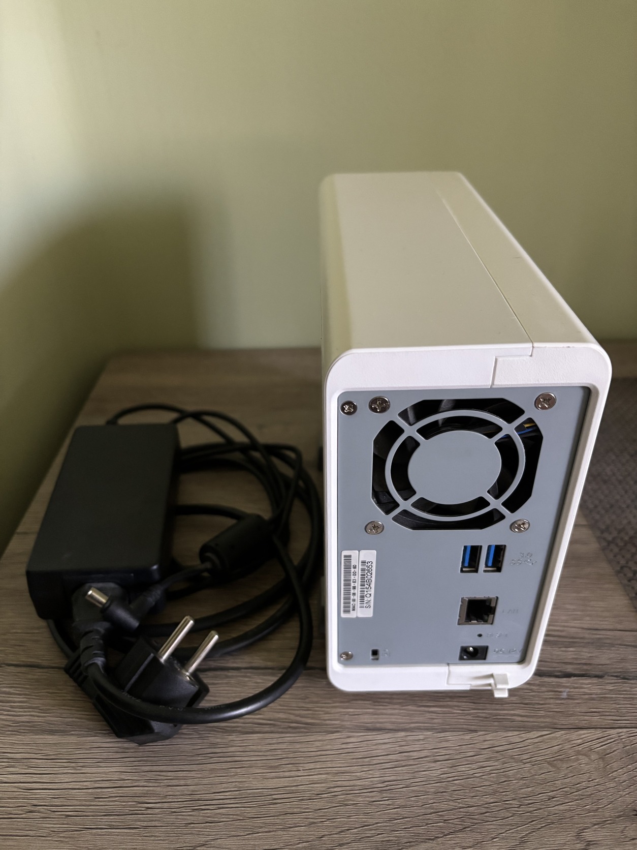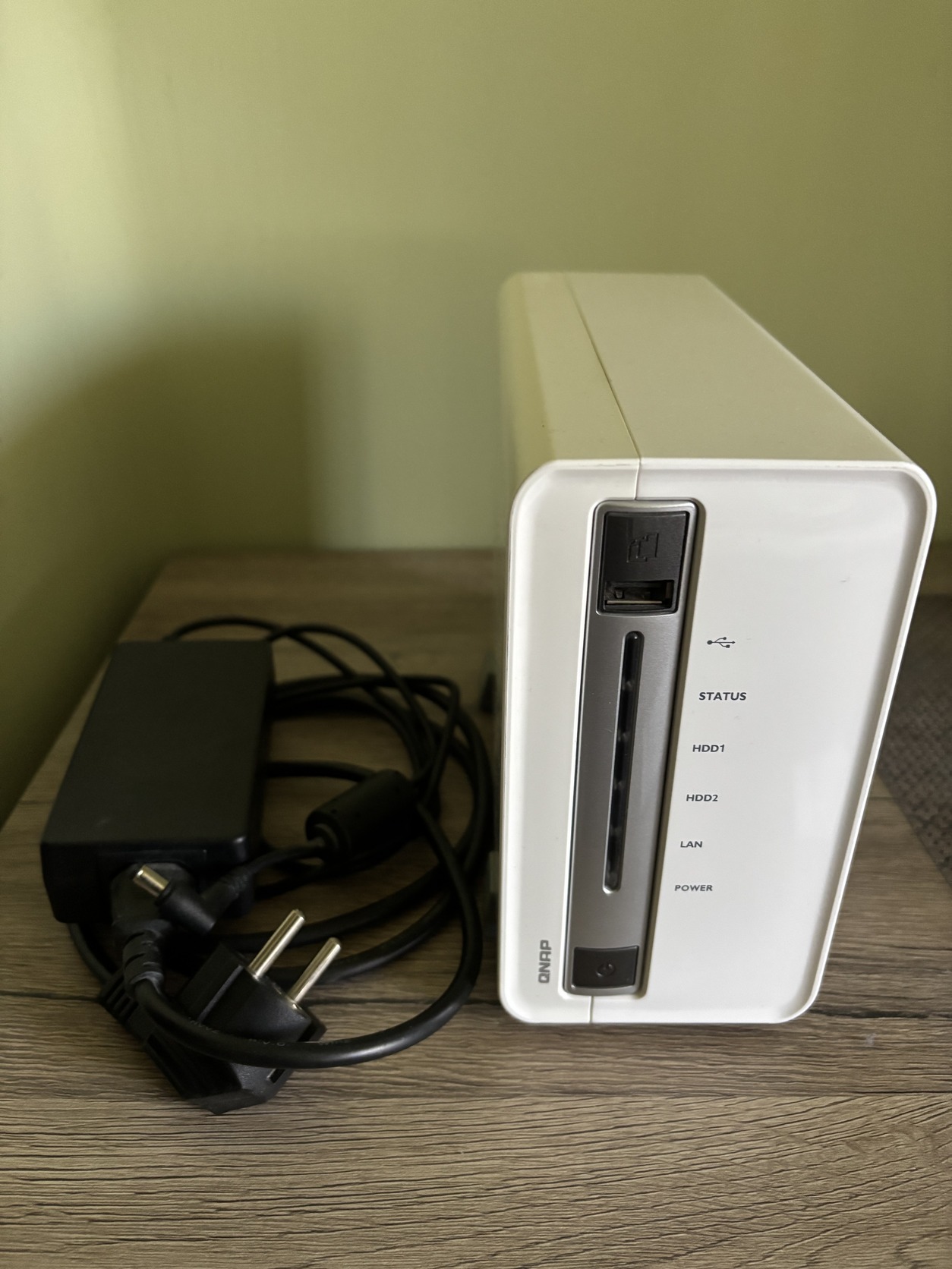 Eladóvá vált QNAP TS-212P 2 lemezes NAS-om, adapterrel, csavarokkal és kábelekkel.