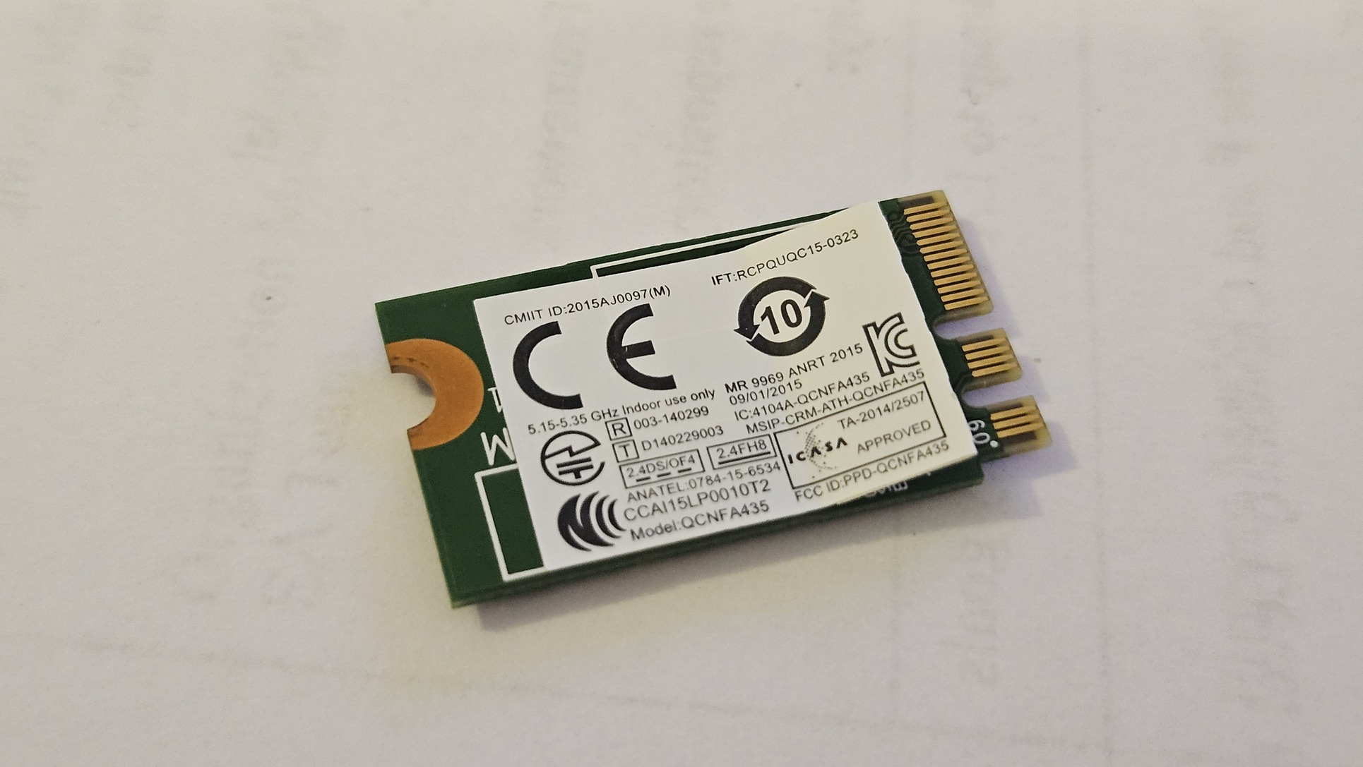 Eladóvá vált egy használatban lévő Lenovo laptopból kiszerelt Qualcomm Atheros QCNFA435 Wi-Fi + Bluetooth modul újabbra cserélés miatt.