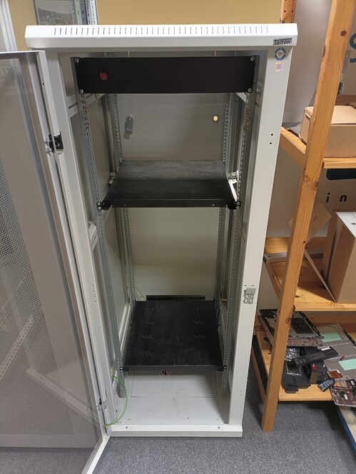 Rack szekrény 2 polccal és ventilátorokkal. Típusa K-Line.