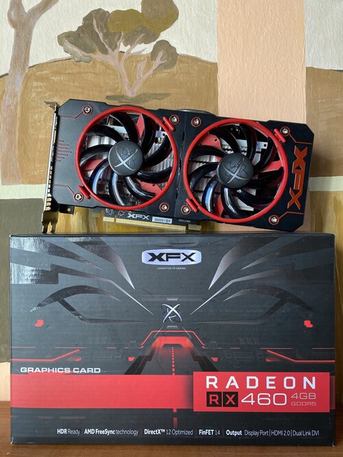 Eladó a képen látható Radeon RX 460 videokártya dobozával együtt.