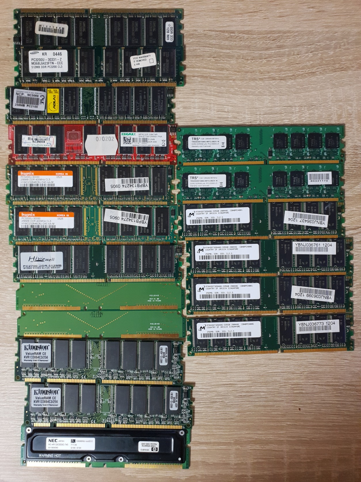 Több régebbi RAM memória. Árak és darabszám a leírás mögött. Az ár darabszámra értendő, nagyobb mennyiségnél alkudni szabad.