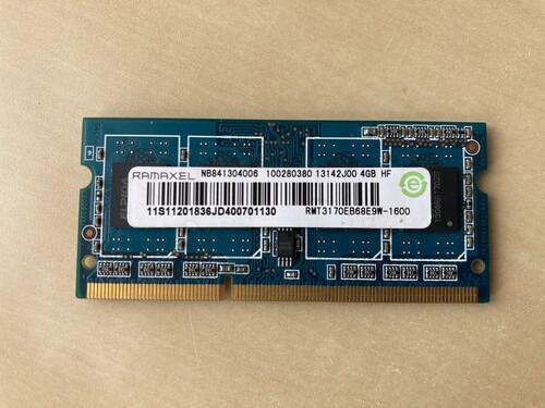 RMT3170EB68E9W-1600 Ramaxel 4GB PC3-12800 DDR3-1600MHz non-ECC Unbuffered CL11 204-Pin SoDimm Single