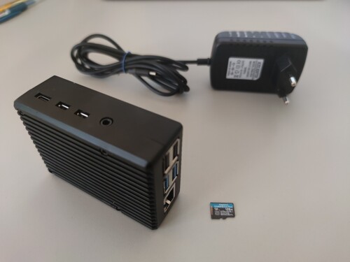 Raspberry Pi4 4GB + 128GB speed SD, + táp + passzív alu ház.