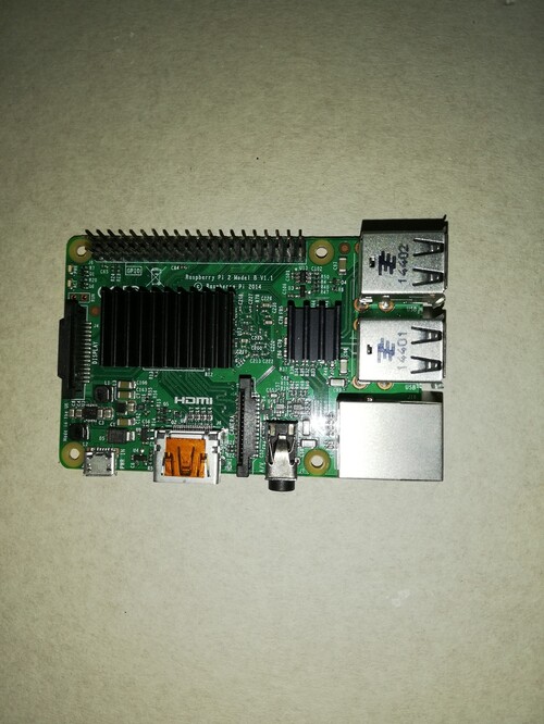 Eladó a képen szereplő Raspberry Pi 2 B, hűtőborda szettel, és hozzá tartozó műanyag házzal.