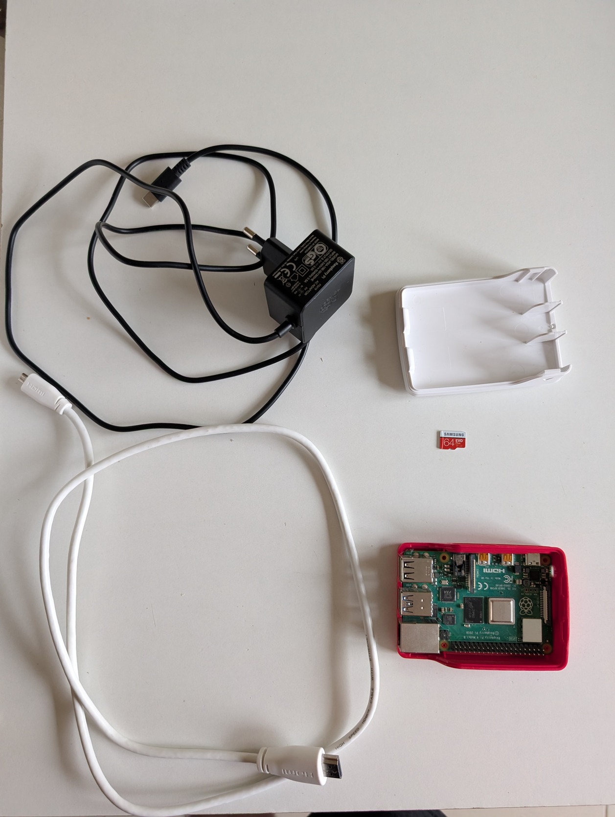 Raspberry Pi 4 B 2GB RAM + 64 GB Samsung MicroSD + Töltő + HDMI Kábel