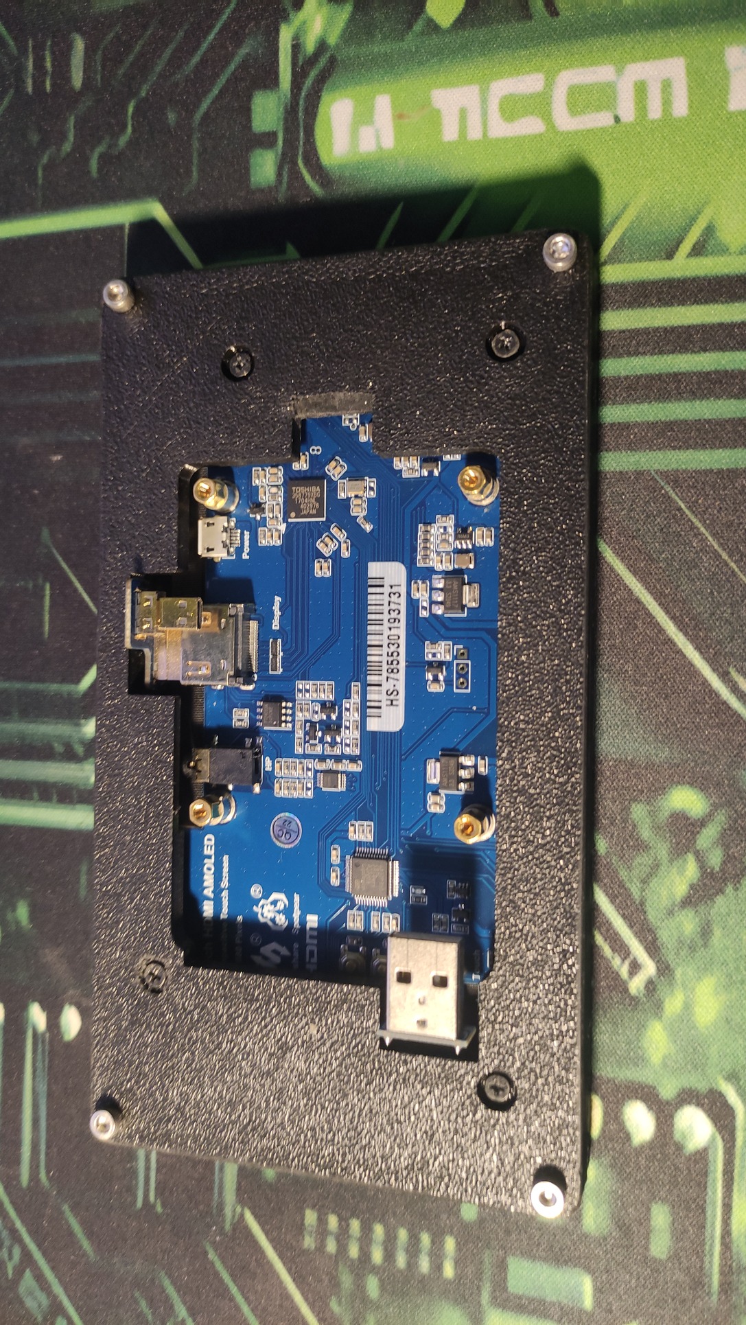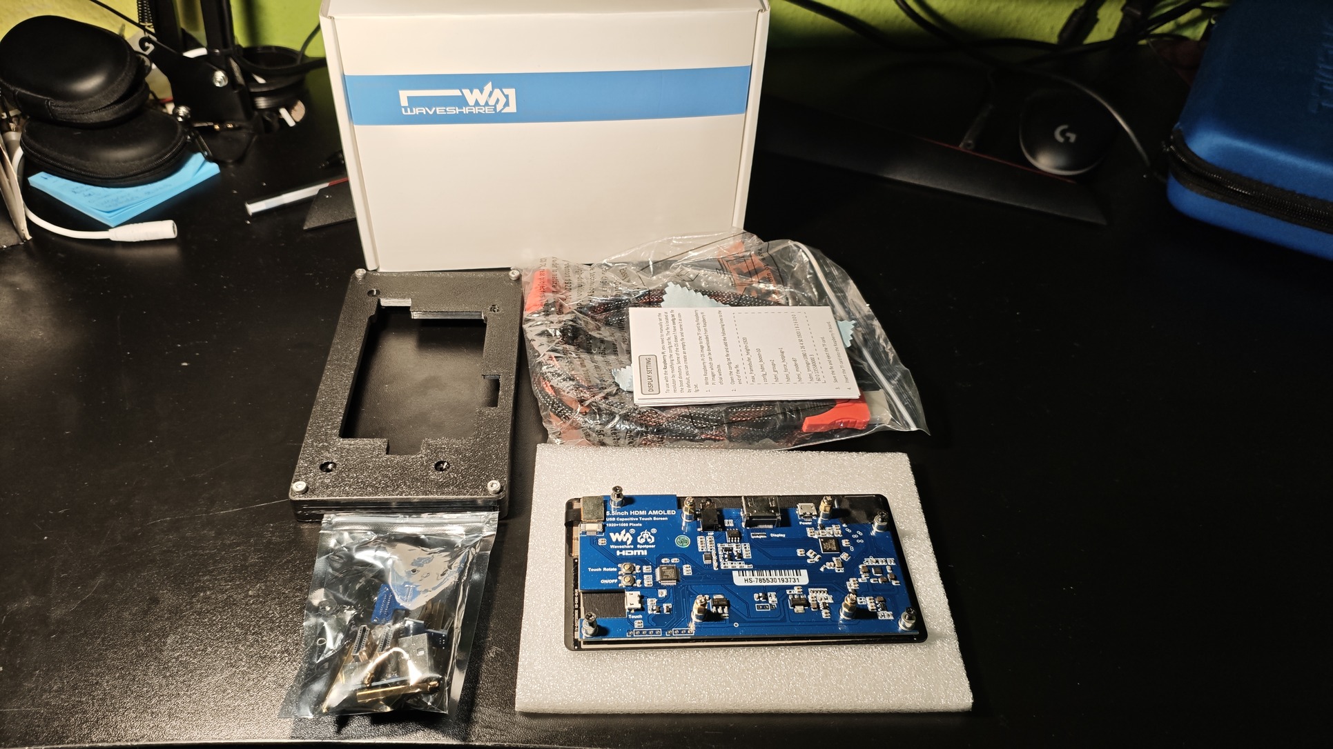 2) WaveShare WS16103 minden gyári tartozékával (5,5" AMOLED, 1080x1920p felbontás, 5 pontos kapacitív érintés, HDMI audió 3,5mm jackre, működik linux, windows alatt egyaránt) + ajándék 3D-nyomtatott ház