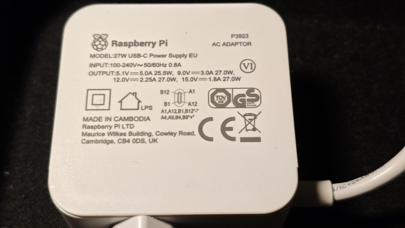 1) Raspberry Pi 5 4GB, gyári ventillátoros hűtőborda, hivatalos tápegység (a csatlakozó műanyag burkolata meg lett faragva egy kicsit hogy elférjen a nyomtatott házban)