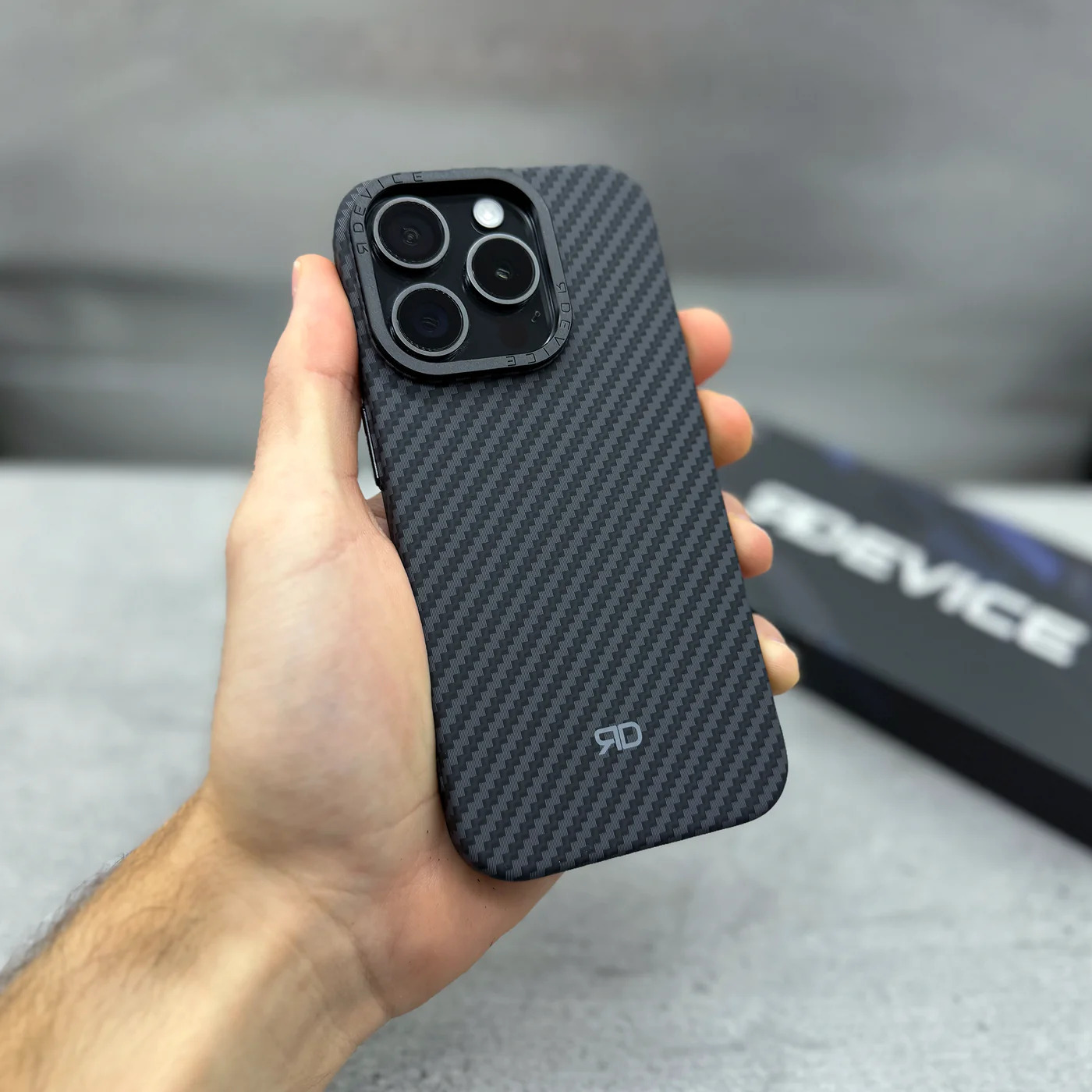 Eladó egy vadiúj, gyári csomagolású RD Carbon Fiber Case V3 tok iPhone 16 Pro készülékhez.