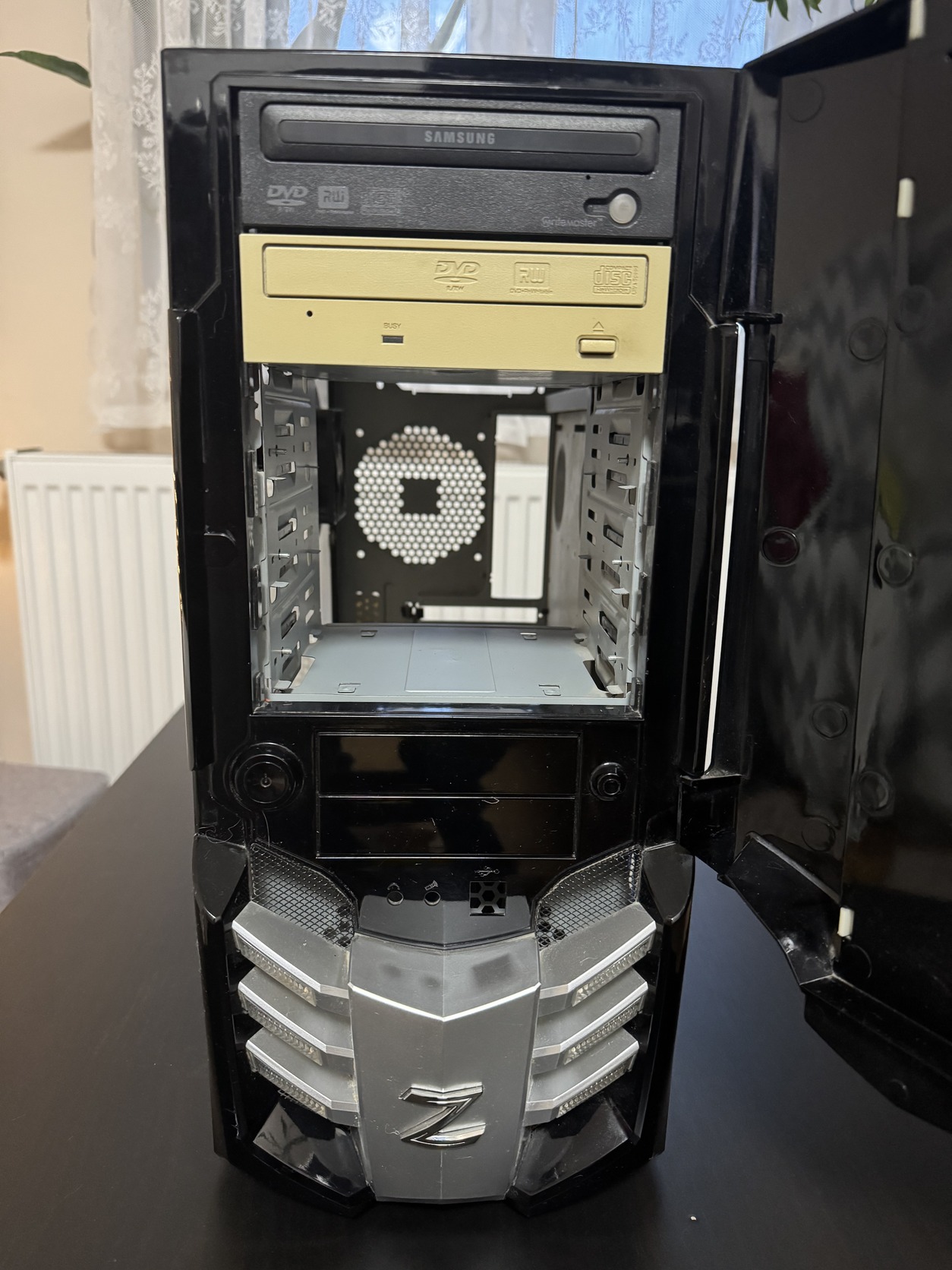 A gépházon találhatóak karcok, illetve az előlapi csatlakozók nincsenek meg. (4. kép)
