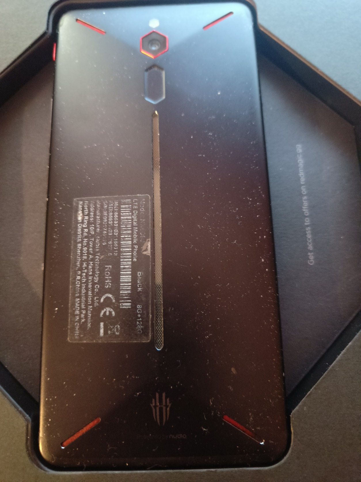Pár éves készülék,a töltés csatlakozó hibás, nem lehet feltölteni.Ha erősebben nyomom a töltőt akkor néha bevillan A redmagic felirat,a képek között megtalálható.A kijelzö két oldalon már kezdi elengedni, próbáltam fényképezni.Egyébként hibátlan a készülék.Doboza megvan .