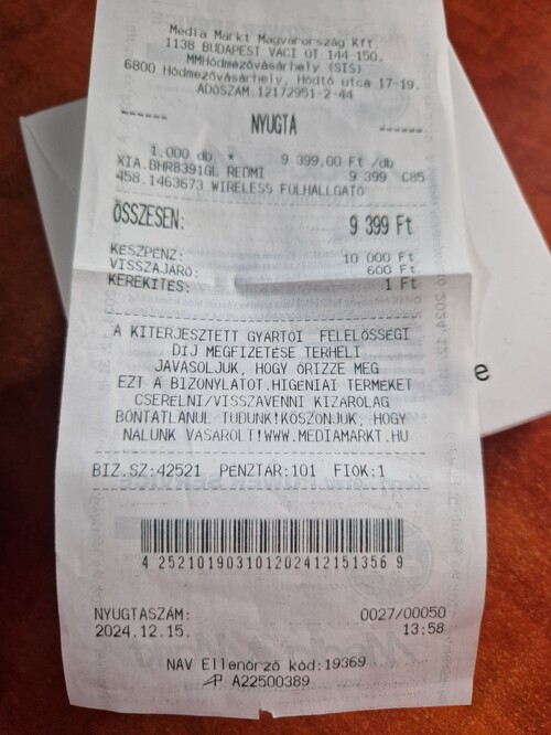 Eladó 2014.12.15.-n vásárolt fülhallgató. Dobozából 1x volt kivéve próba végett, de nem olyan volt mint az elképzelés ezért megvállnék tőle.